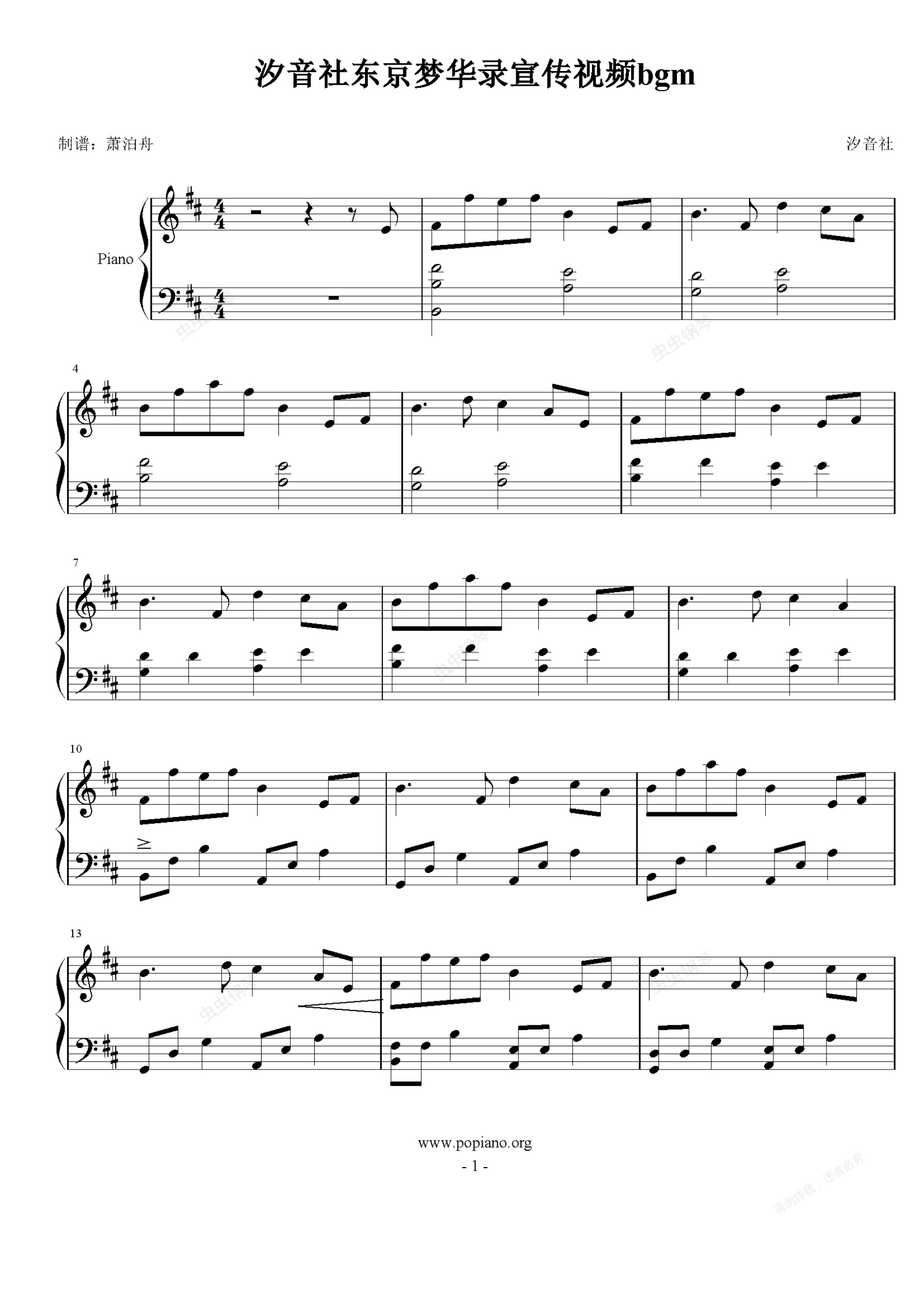 钢琴谱:汐音社 东京梦华录宣传视频bgm