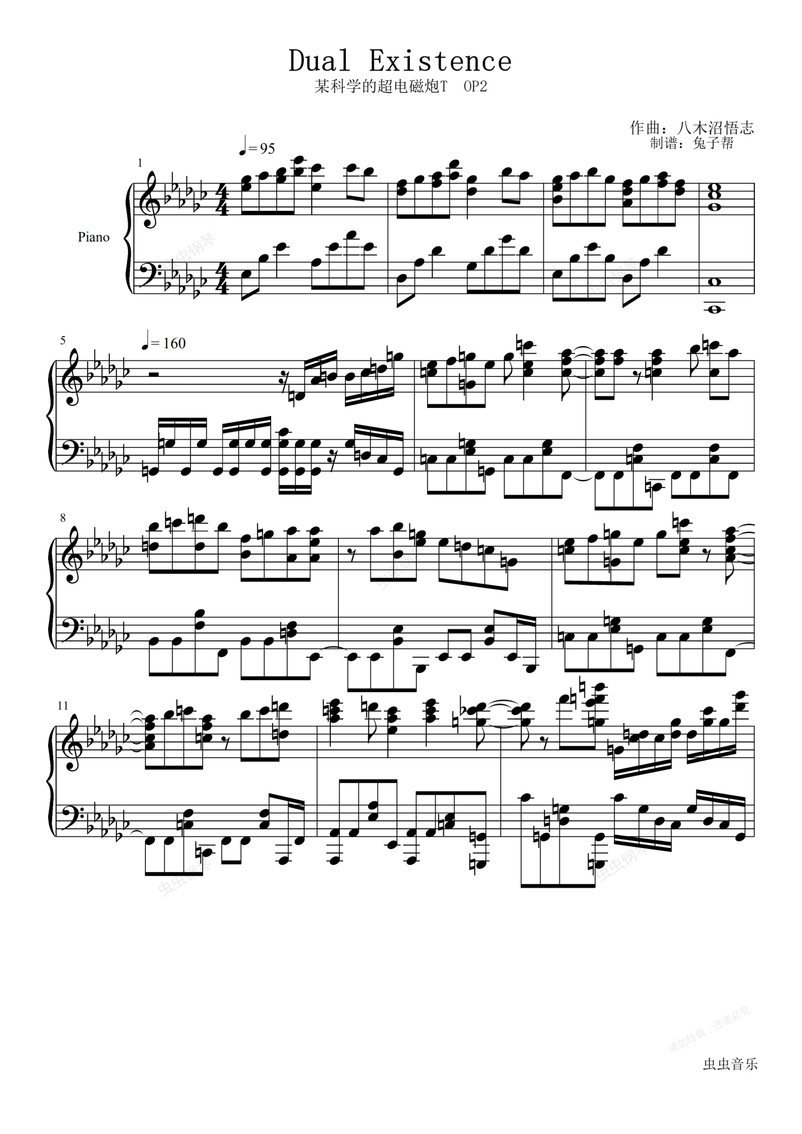 钢琴谱:【某科学的超电磁炮T】Dual Existence(整理版)