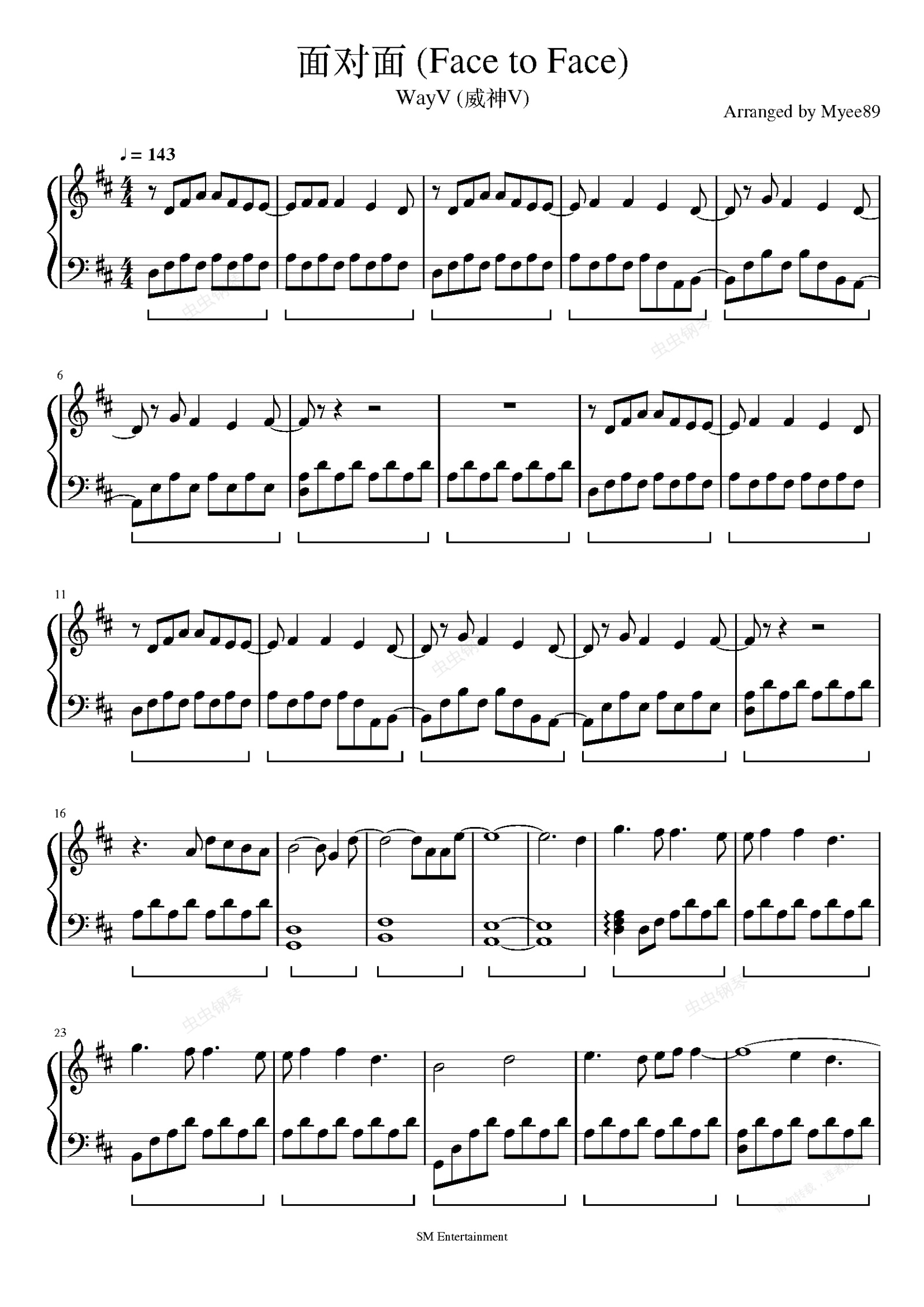 钢琴谱:威神V (WayV) - 面对面 (Face to Face) 钢琴谱
