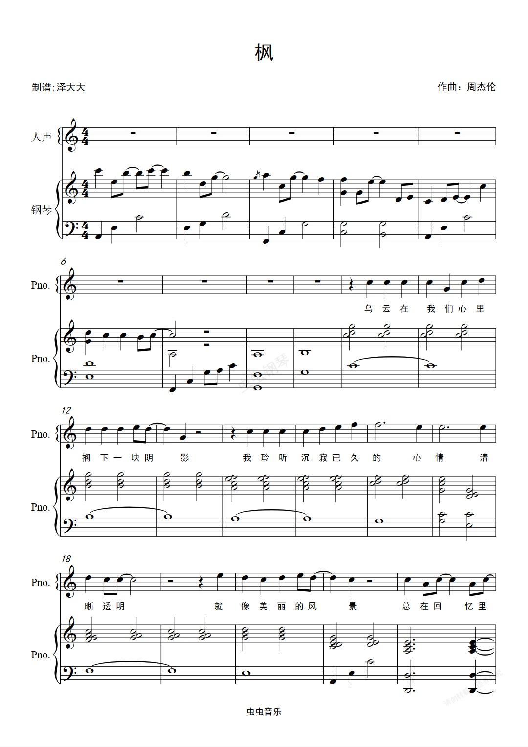 钢琴谱:枫【完美伴奏附词】