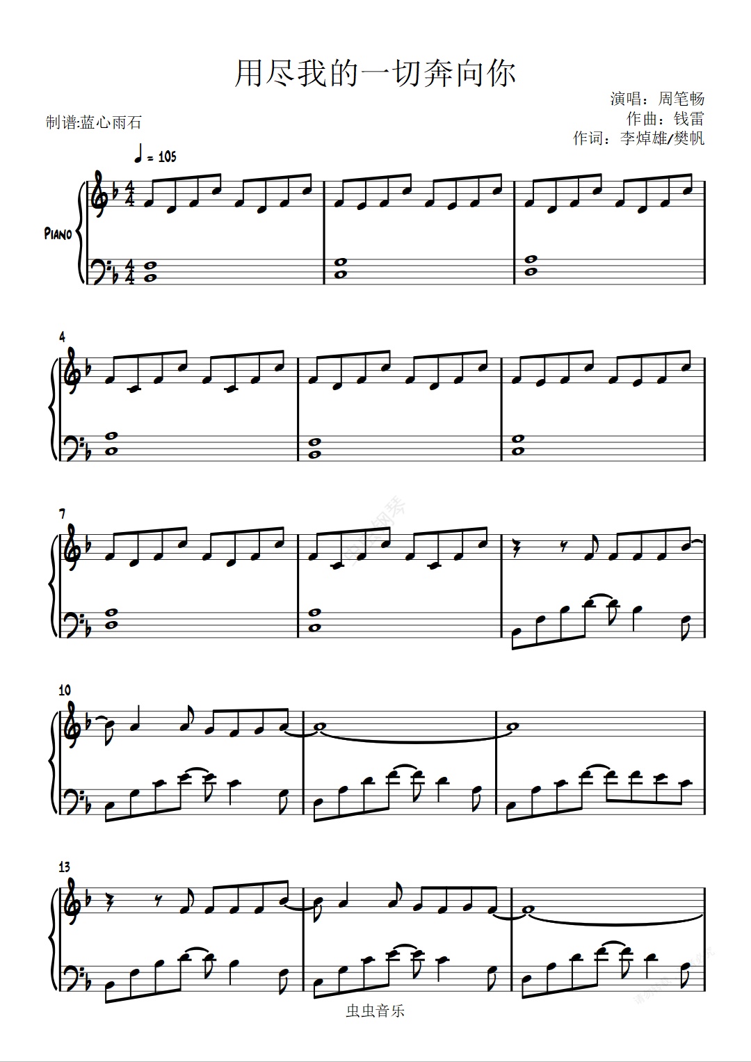 钢琴谱:用尽我的一切奔向你
