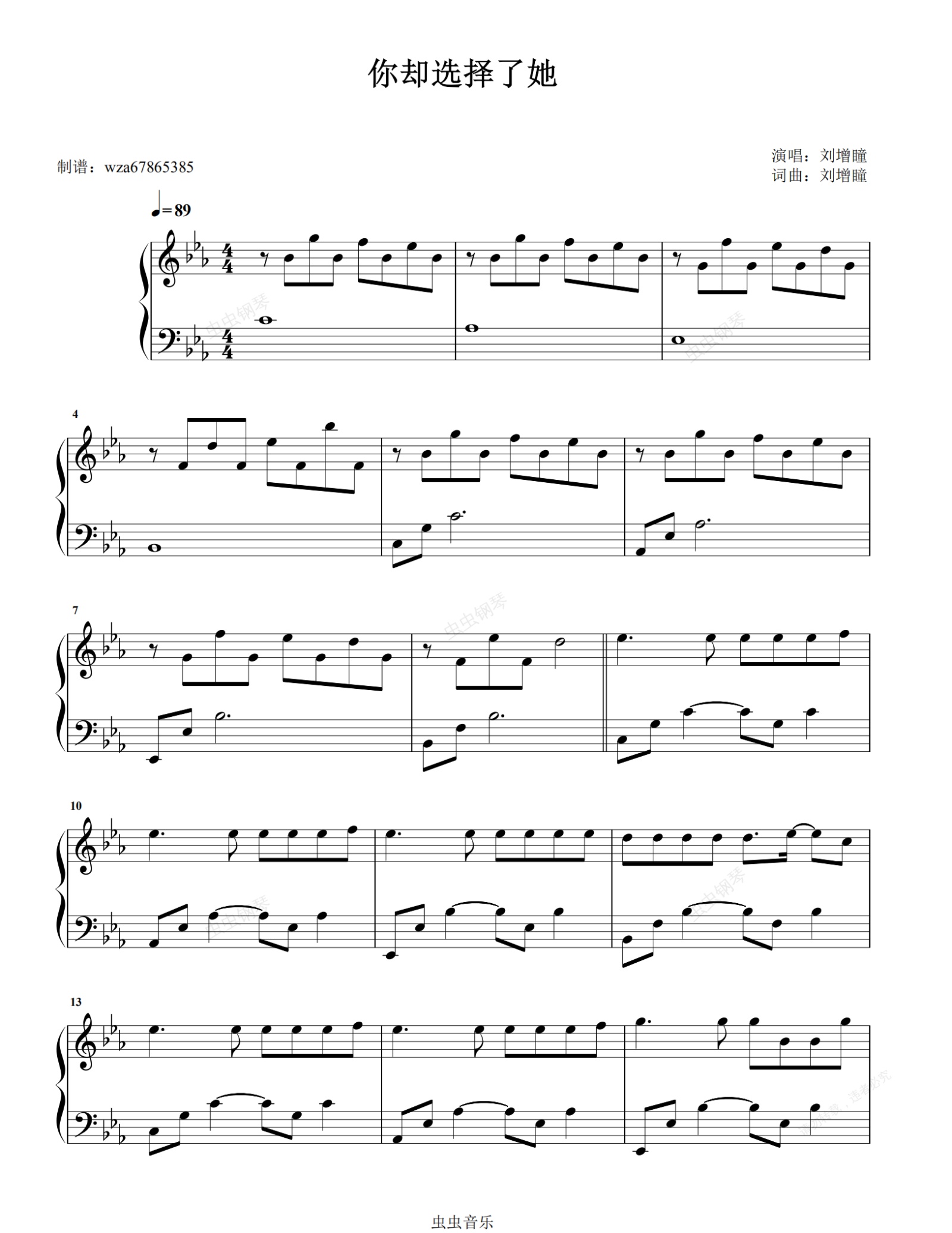 钢琴谱:你却选择了她