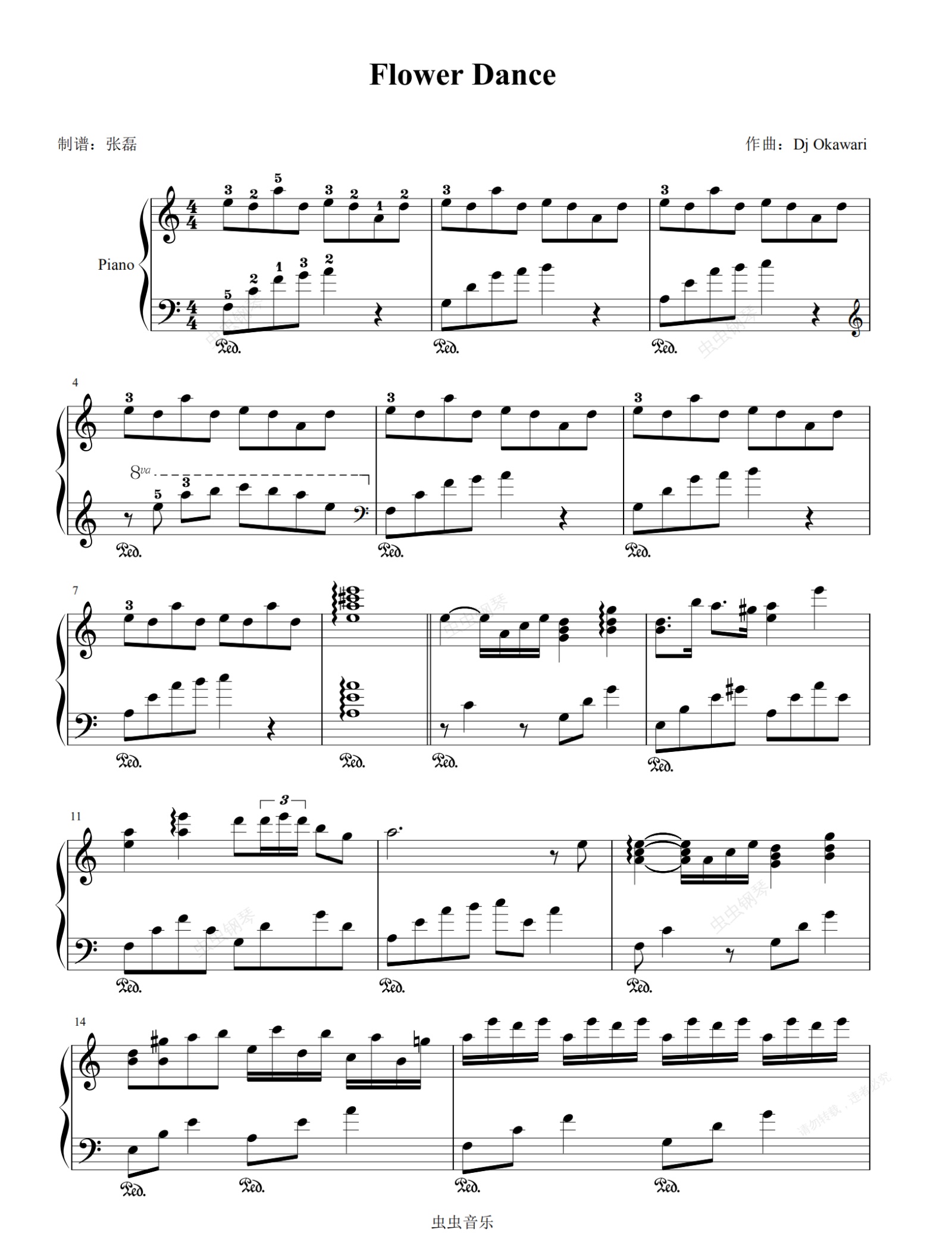 钢琴谱:Flower Dance--Dj Okawari--C大调