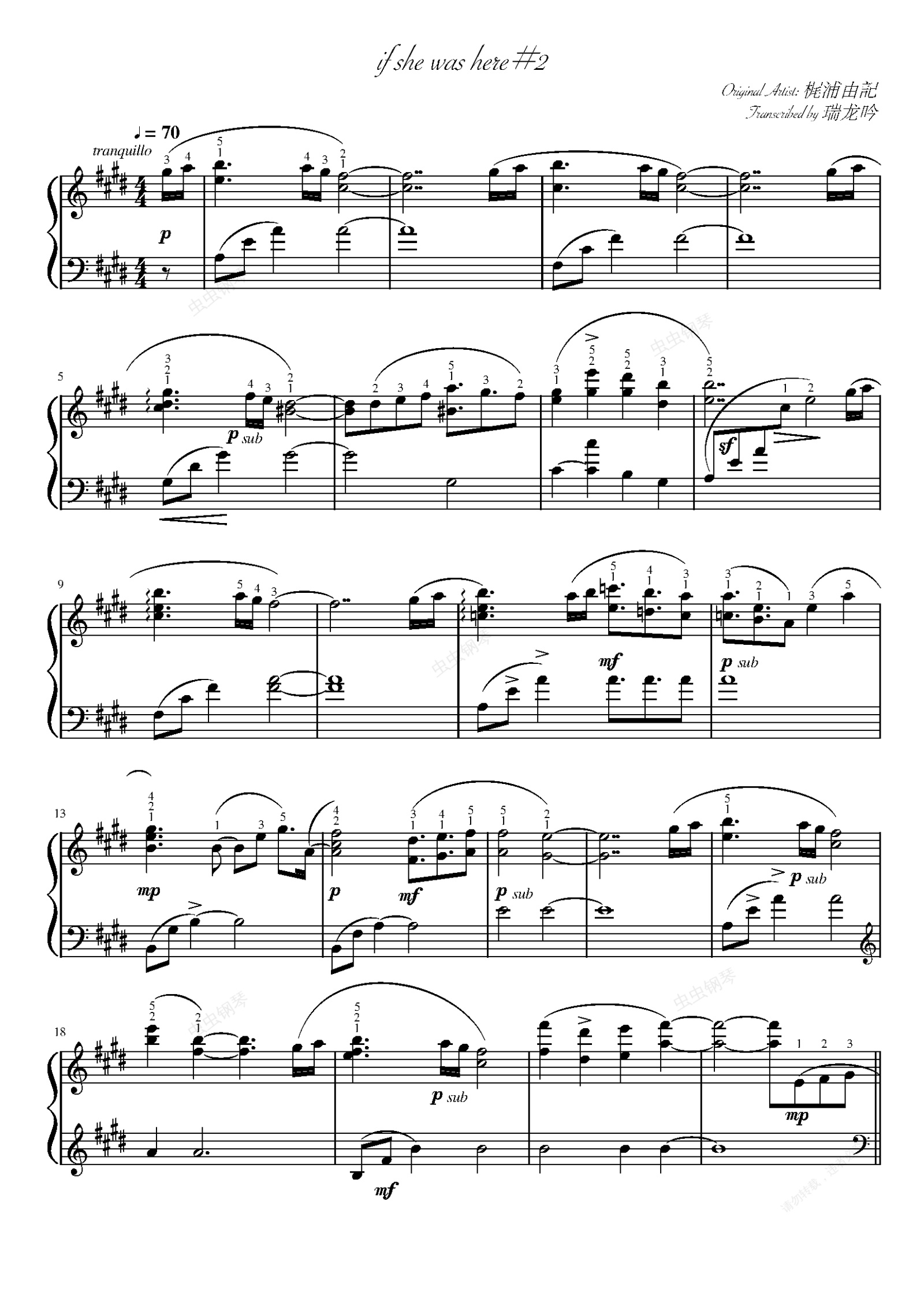 钢琴谱:刀剑神域第三季爱丽丝的OST:if she was here#2