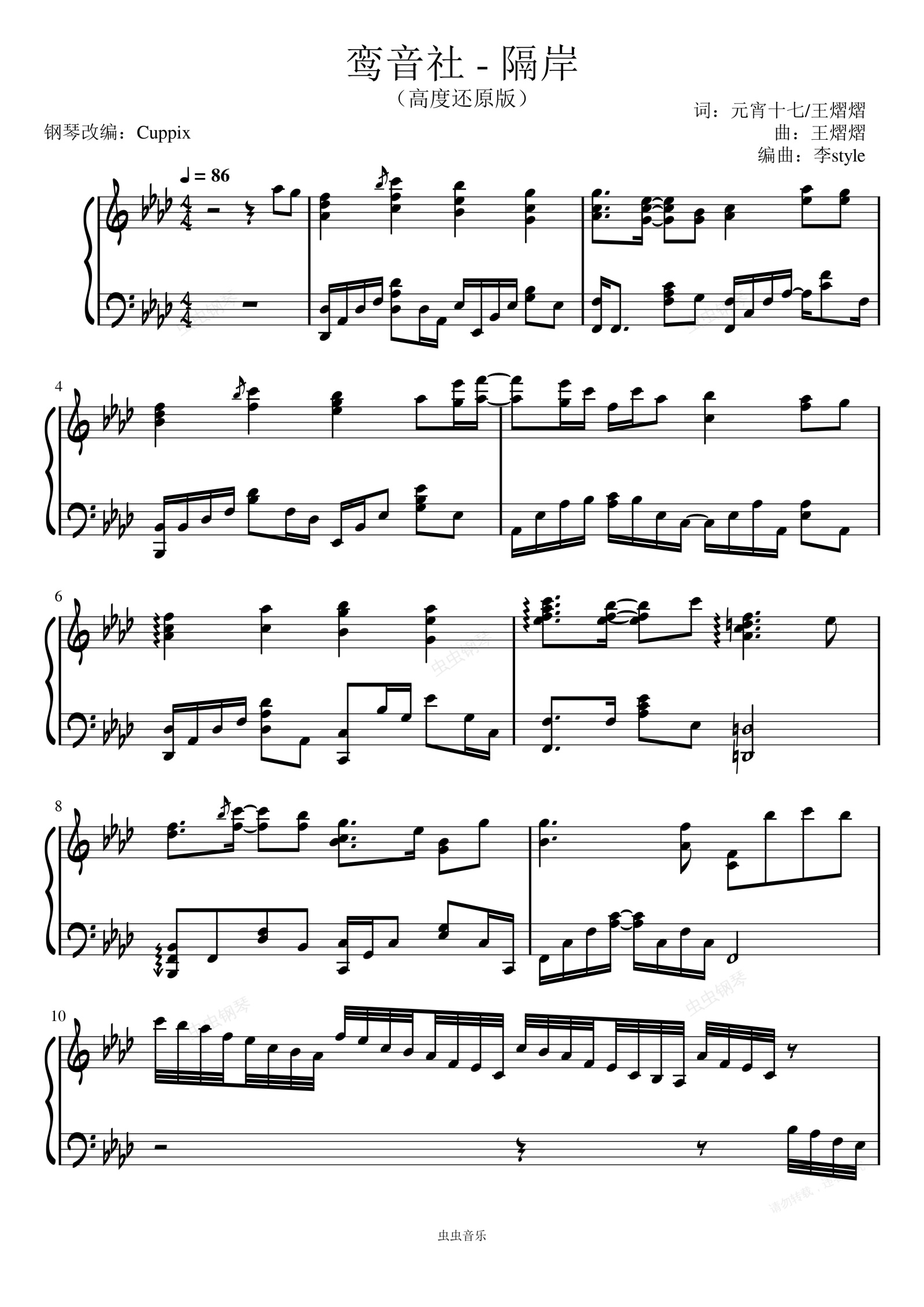 钢琴谱:鸾音社 - 隔岸(高度还原 Cuppix改编)