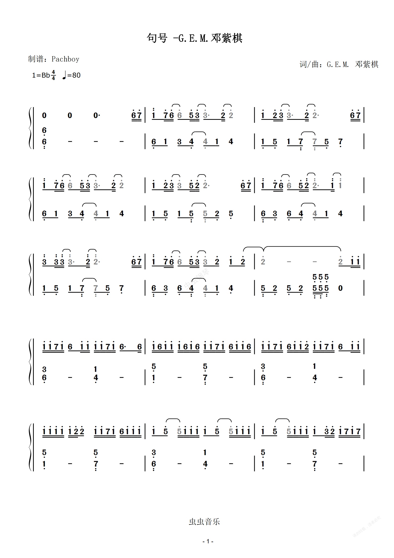 钢琴谱:句号【双手简谱】—G.E.M邓紫棋 专辑:摩天动物园