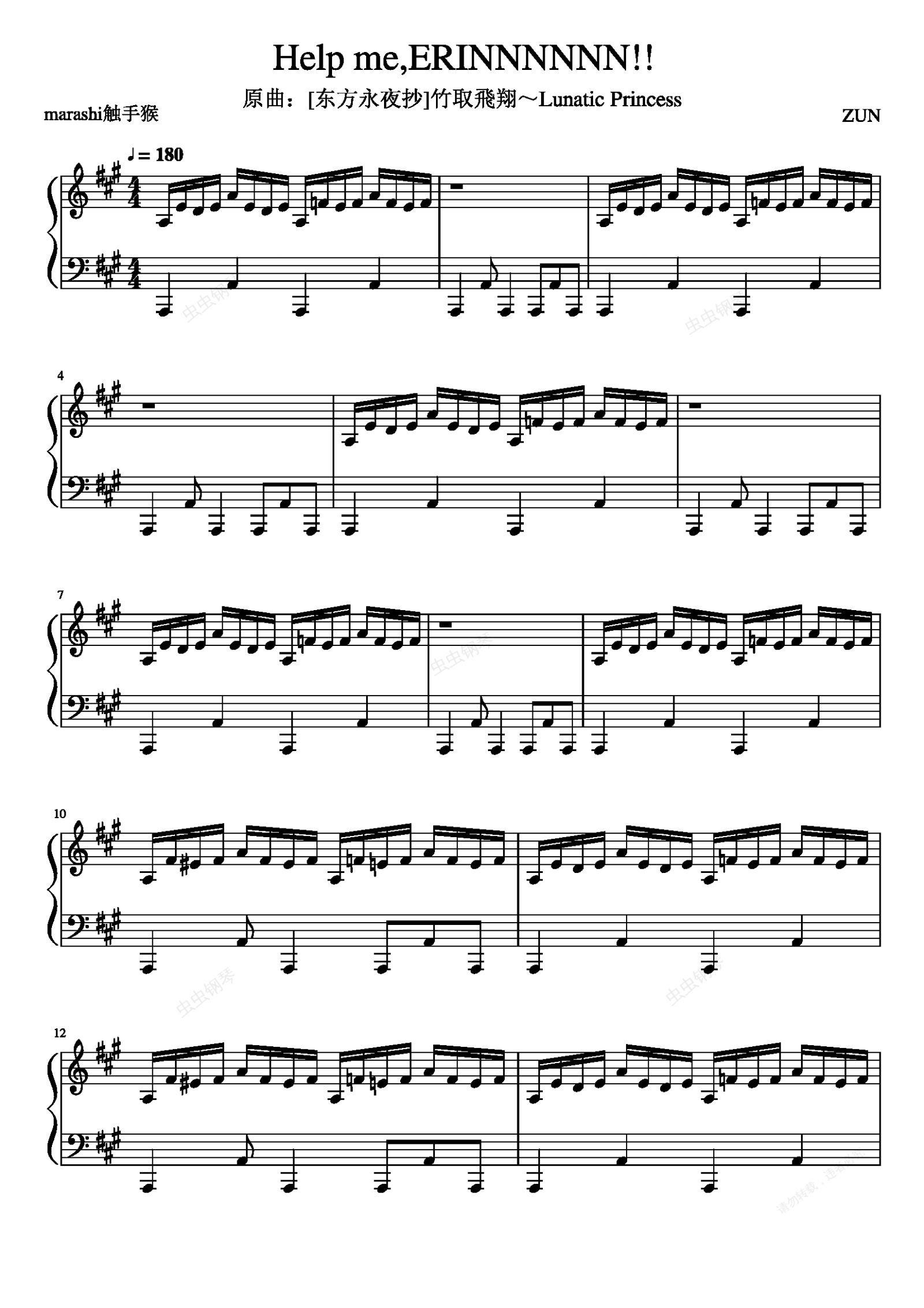 钢琴谱:Help me,ERINNNNNN!!【触手猴】