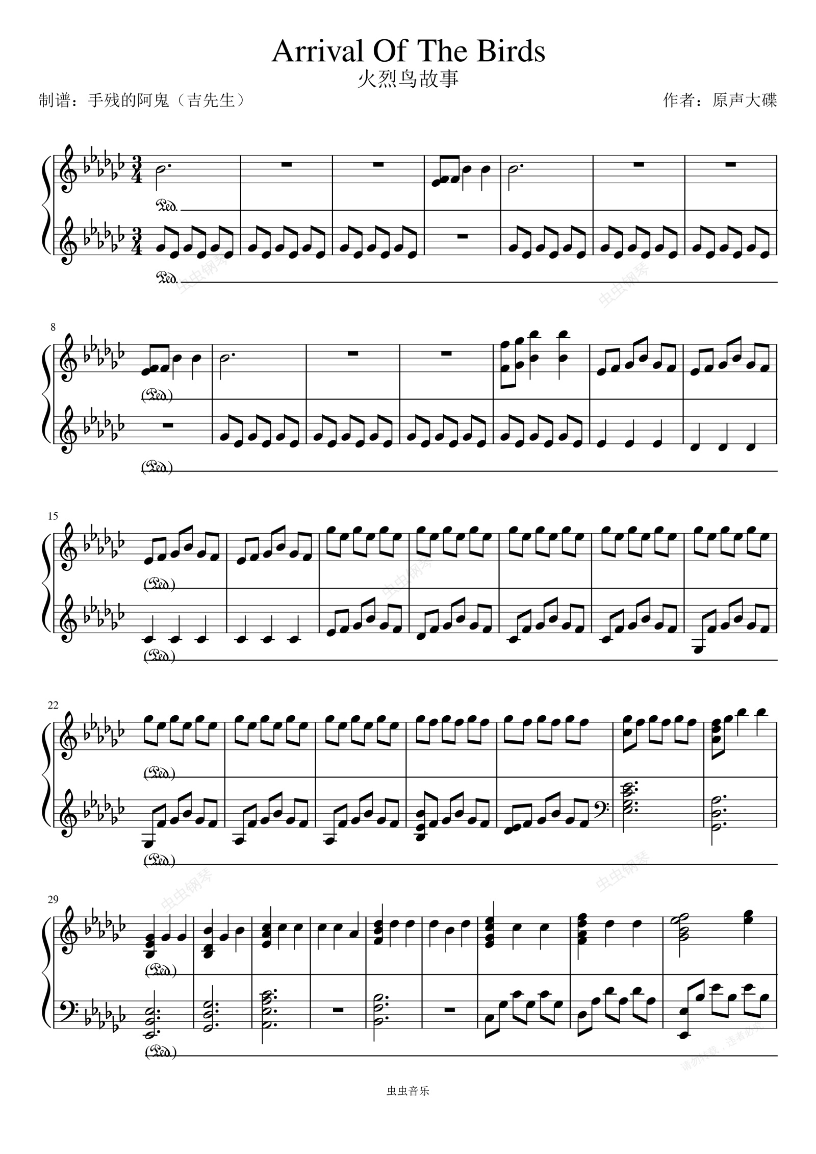 钢琴谱:Arrival Of The Birds