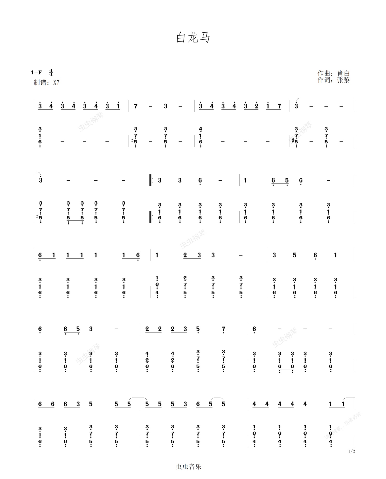 钢琴谱:白龙马