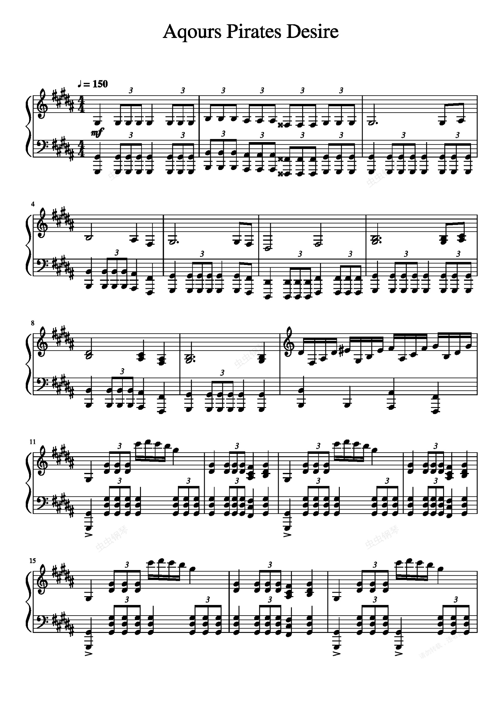 钢琴谱:lovelive sunshine——Aqours Pirates Desire+black dejavu+pirates of the frontier