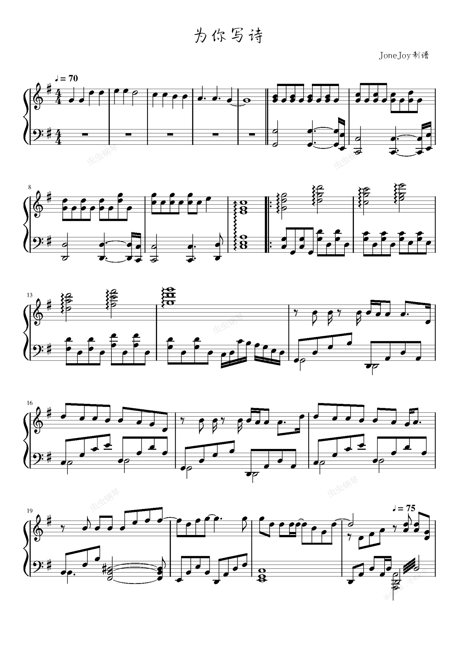 钢琴谱:为你写诗-吴克群 完美诠释