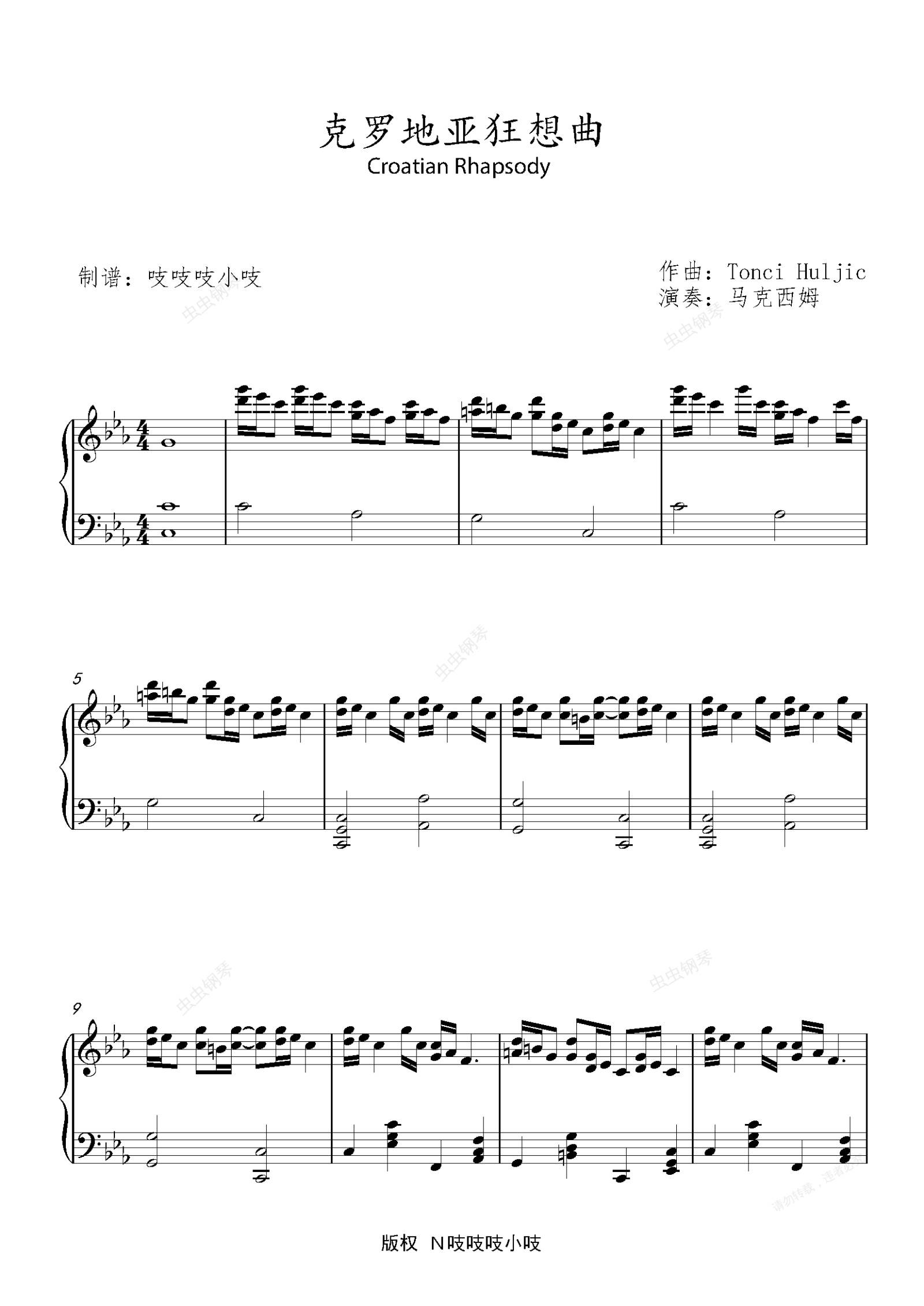 钢琴谱:克罗地亚狂想曲(Croatian Rhapsody) 演奏版 马克西姆 Maksim Mrvica