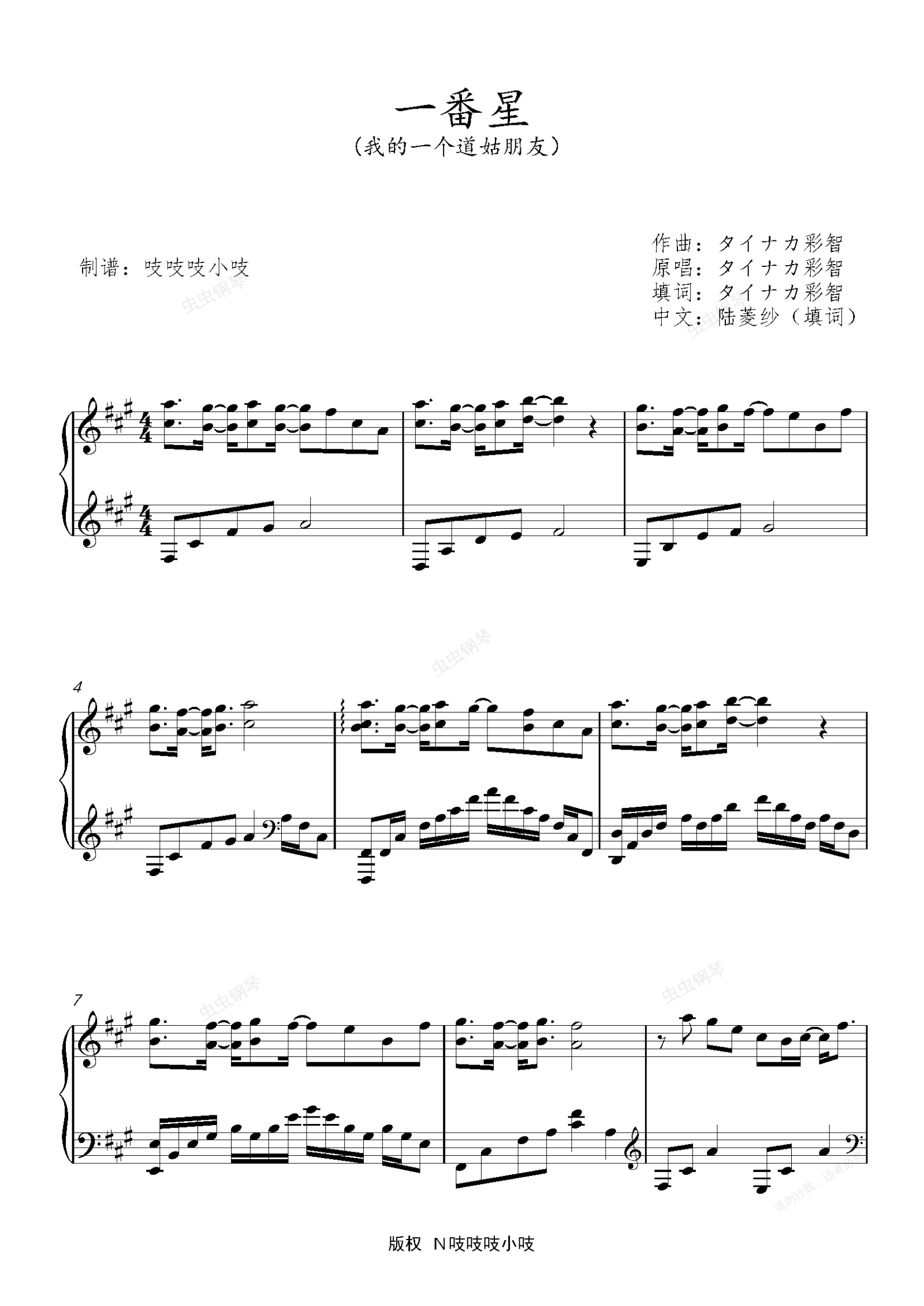 钢琴谱:一番星(我的一个道姑朋友)タイナカ彩智 双笙