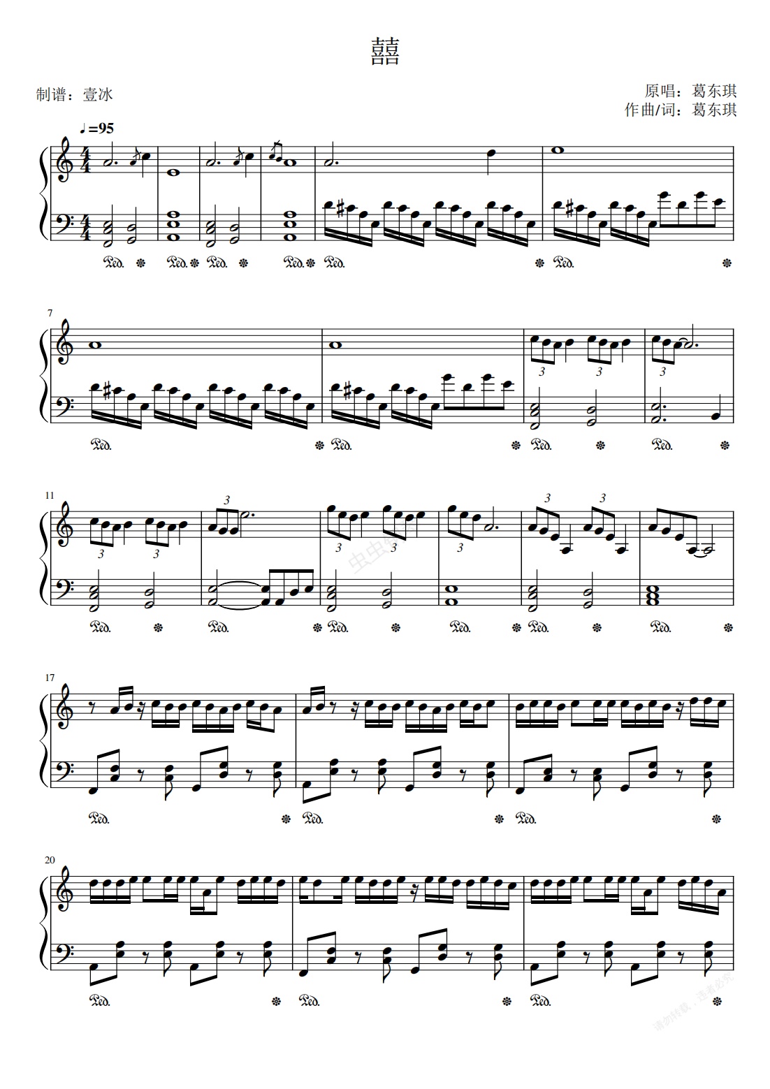 钢琴谱:囍-壹冰钢琴版(公众号:壹冰DoMiSo)