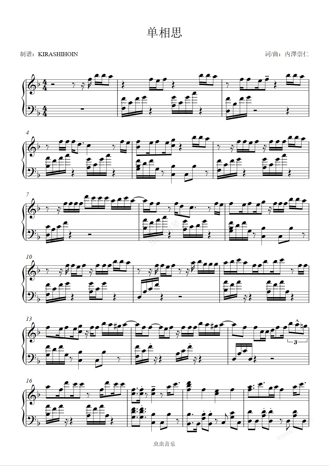 钢琴谱:カタオモイ/单相思