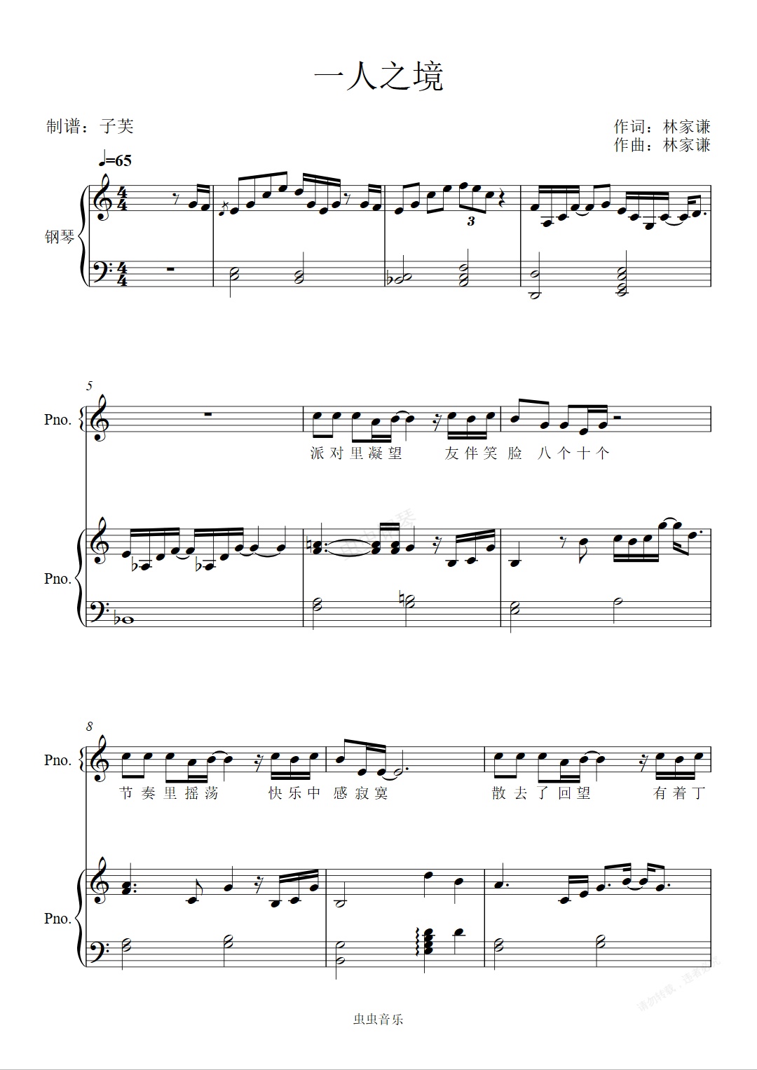 钢琴谱:一人之境-林家谦-钢琴独奏高度还原版