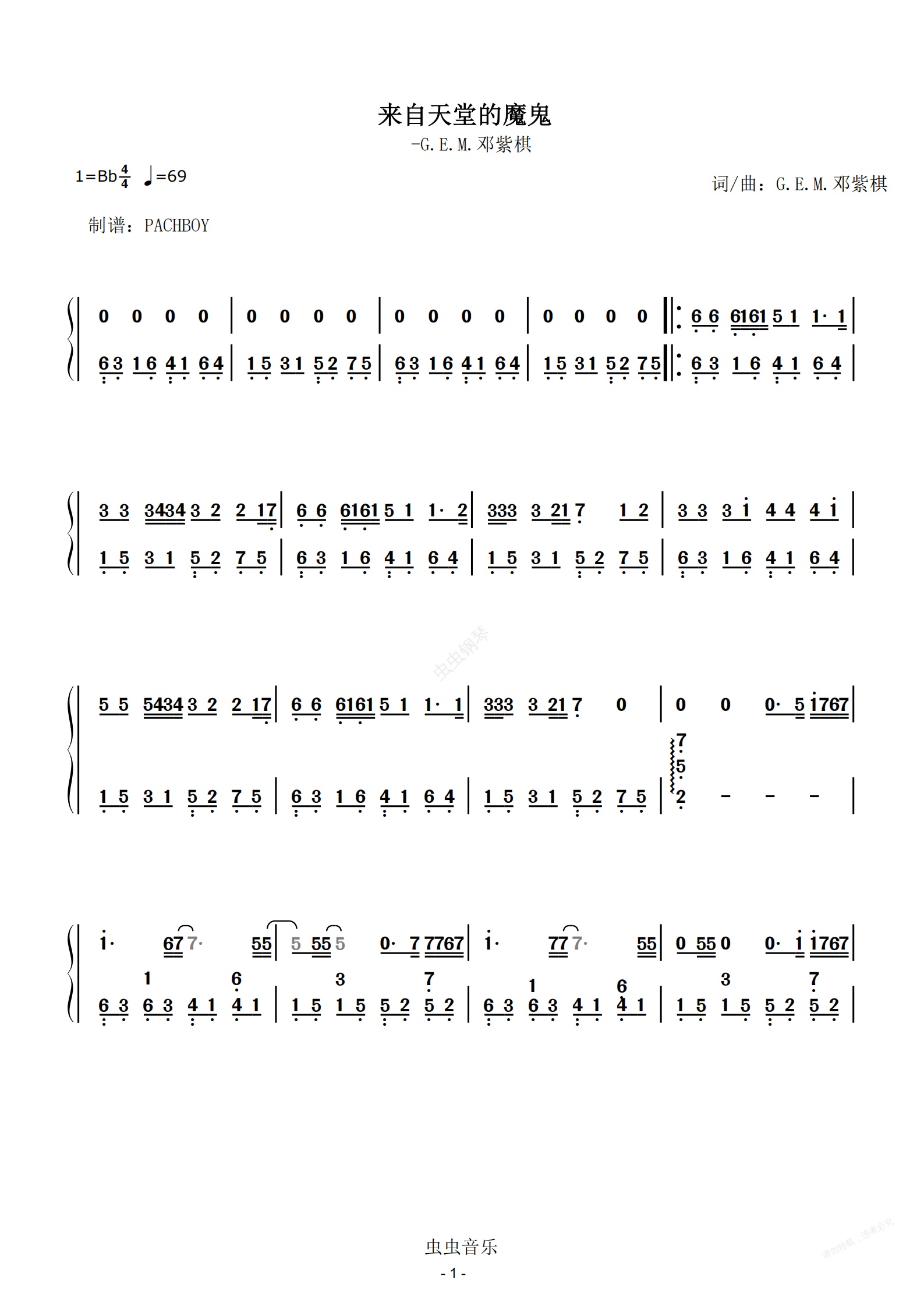 钢琴谱:来自天堂的魔鬼【双手简谱】