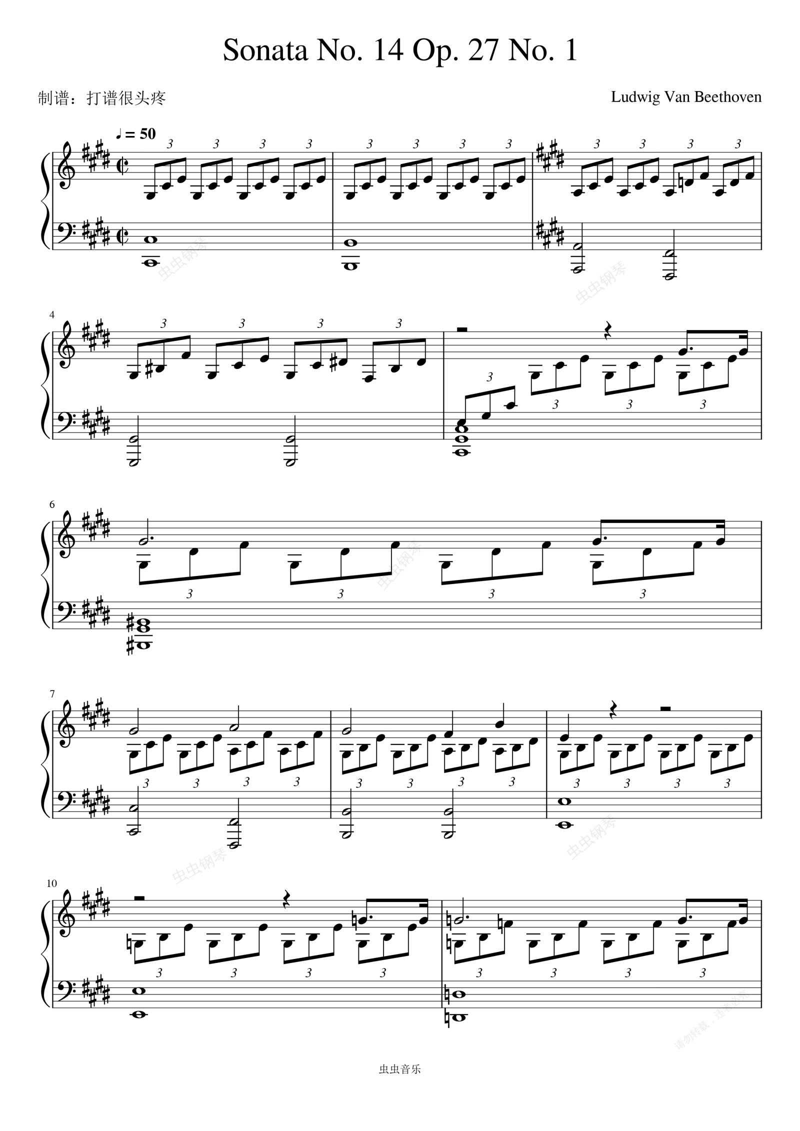 钢琴谱:贝多芬月光奏鸣曲第一乐章