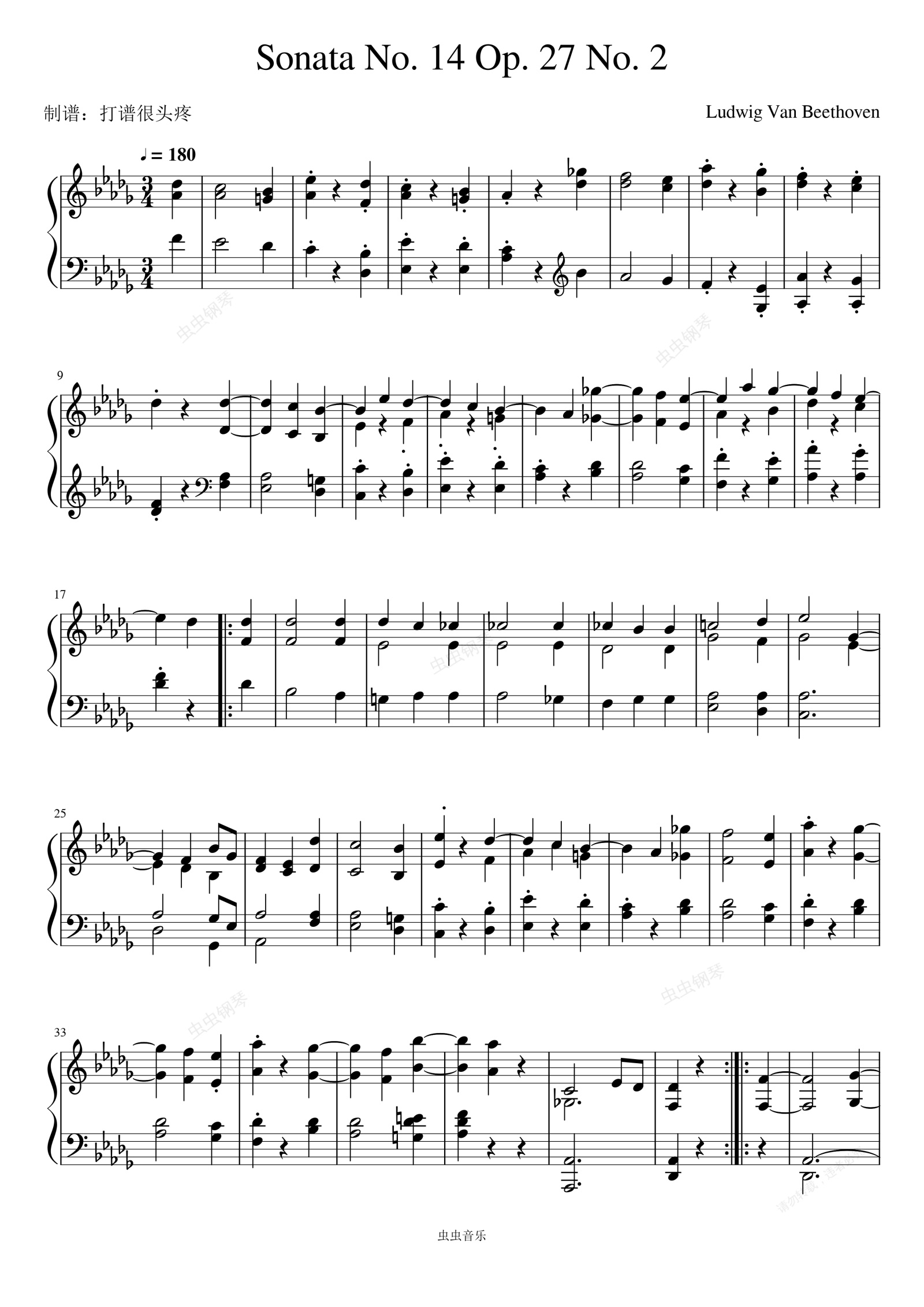 钢琴谱:贝多芬月光奏鸣曲第二乐章