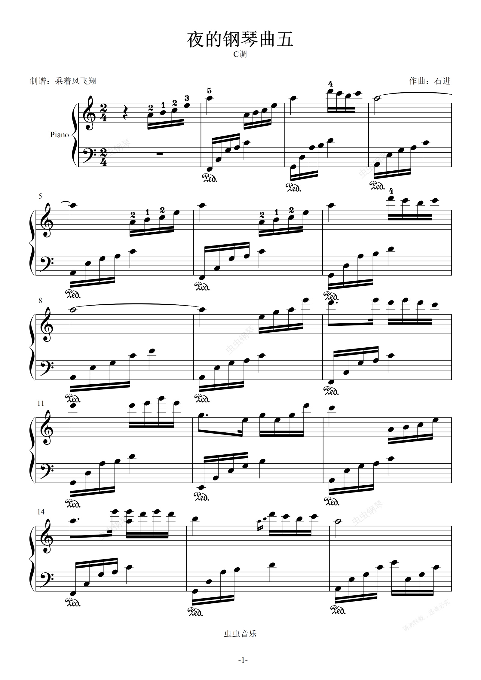 钢琴谱:夜的钢琴曲五-石进-大音符版