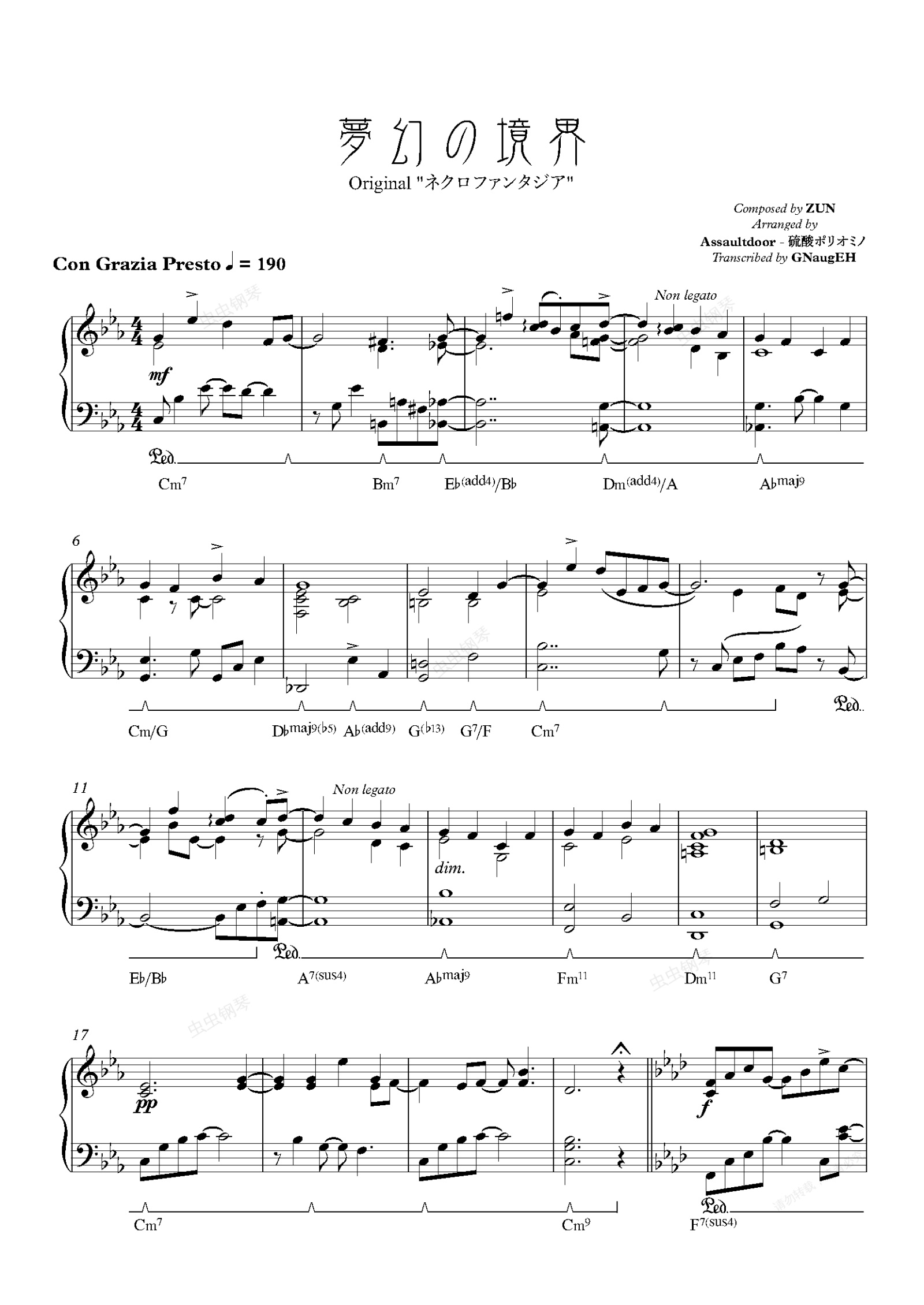 钢琴谱:【东方-Assaultdoor】夢幻の境界 (原曲: ネクロファンタジア)