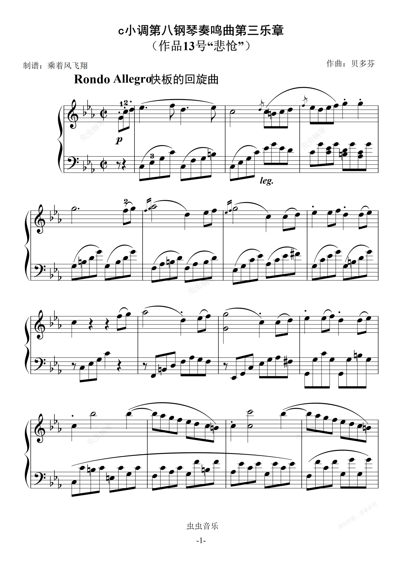 钢琴谱:c小调第八钢琴奏鸣曲第三乐章--大音符版--贝多芬
