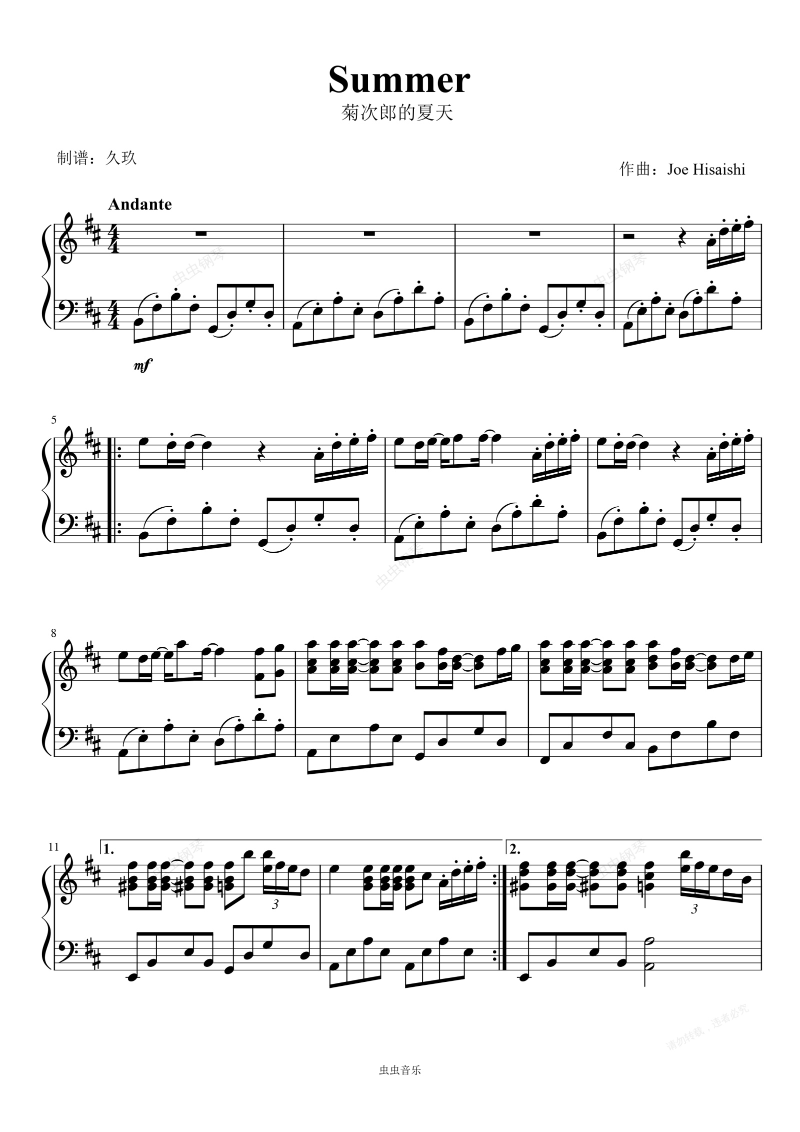 钢琴谱:Summer菊次郎的夏天-久石让 宫崎骏电影
