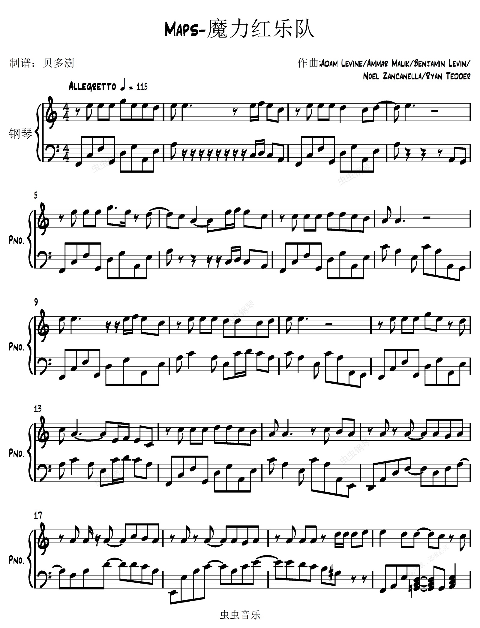 钢琴谱:Maps-魔力红乐队C大调简易版