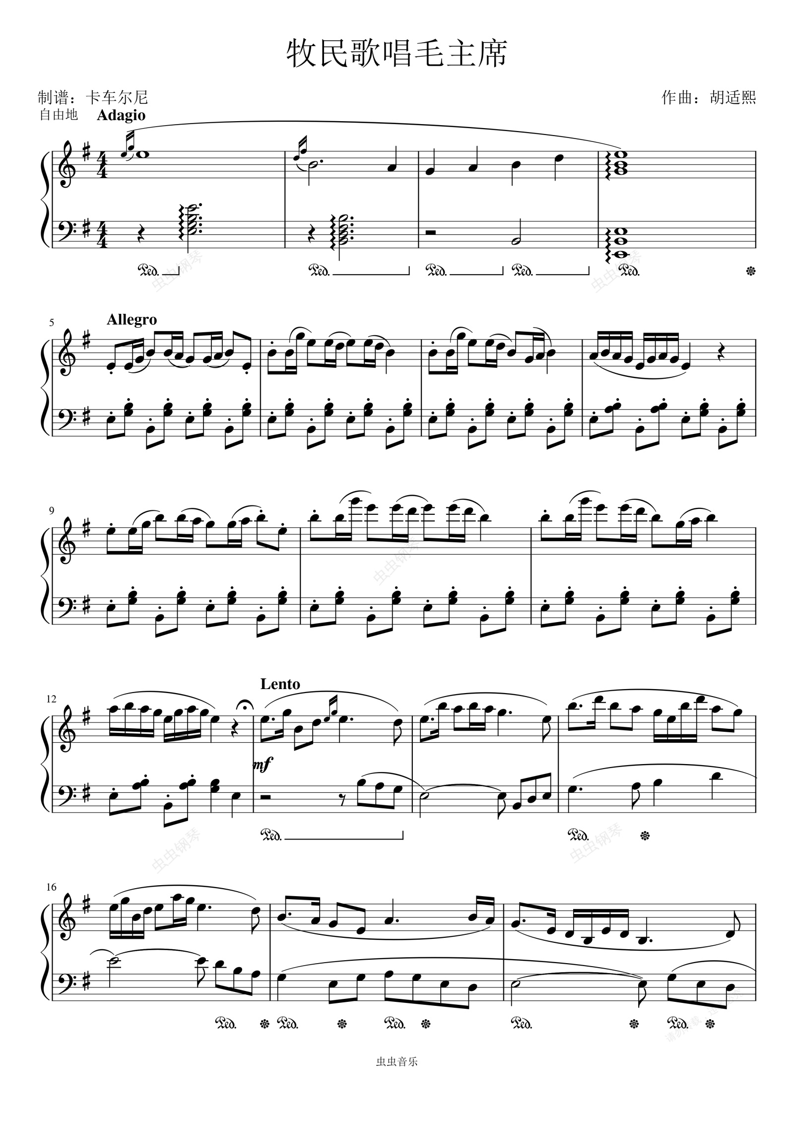 钢琴谱:牧民歌唱毛主席 钢琴基础教程