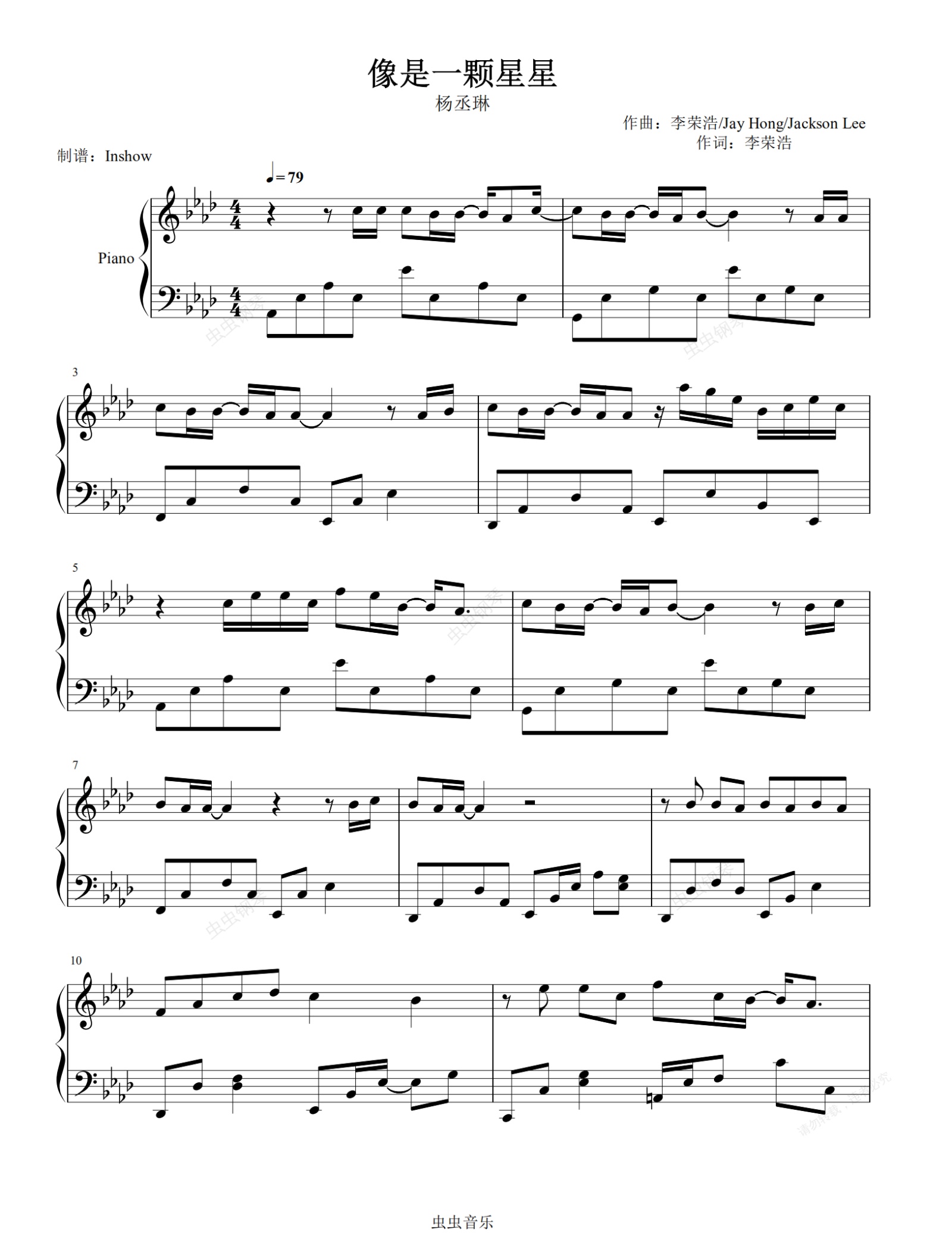 钢琴谱:杨丞琳 - 像是一颗星星【独奏谱】