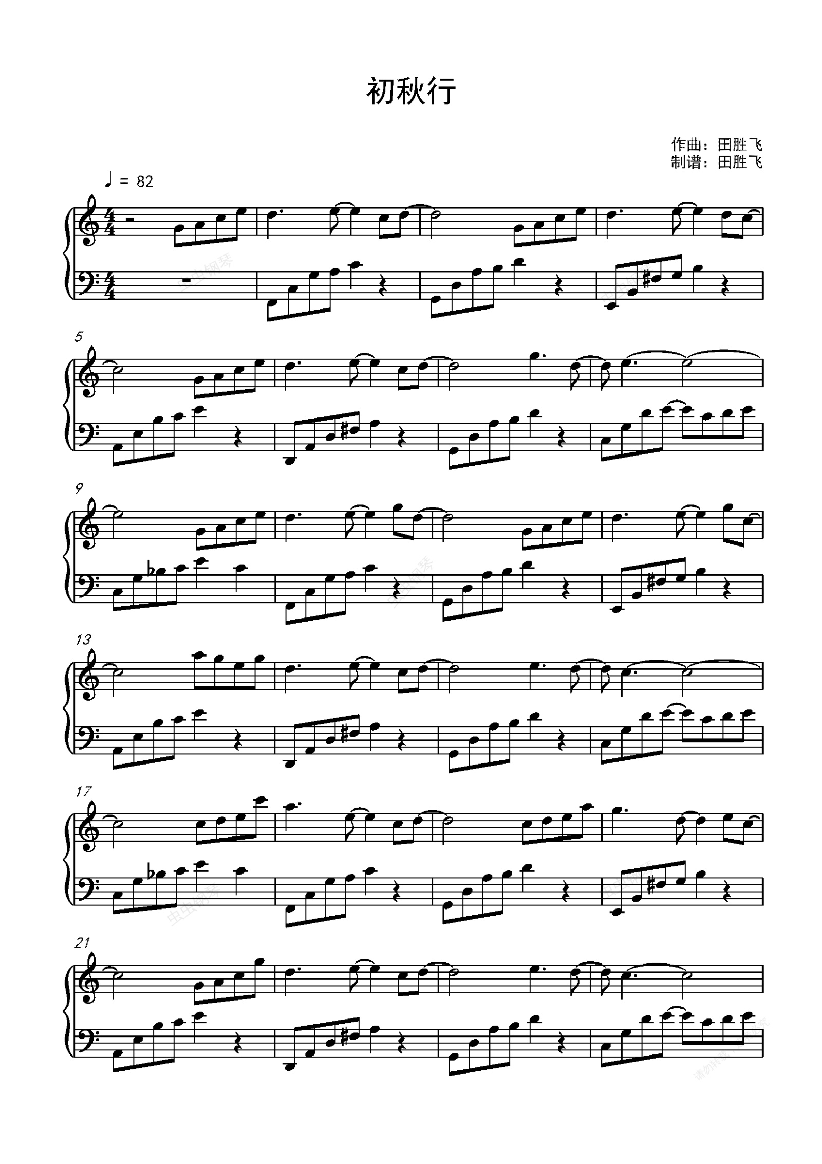 钢琴谱:《初秋行》-田胜飞-C调独奏