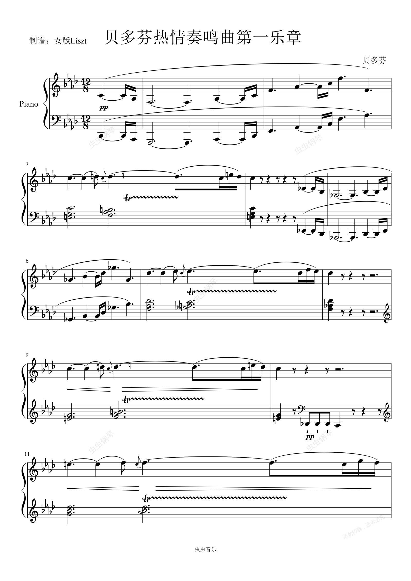 钢琴谱:贝多芬热情奏鸣曲第一乐章  No.23, Op.57