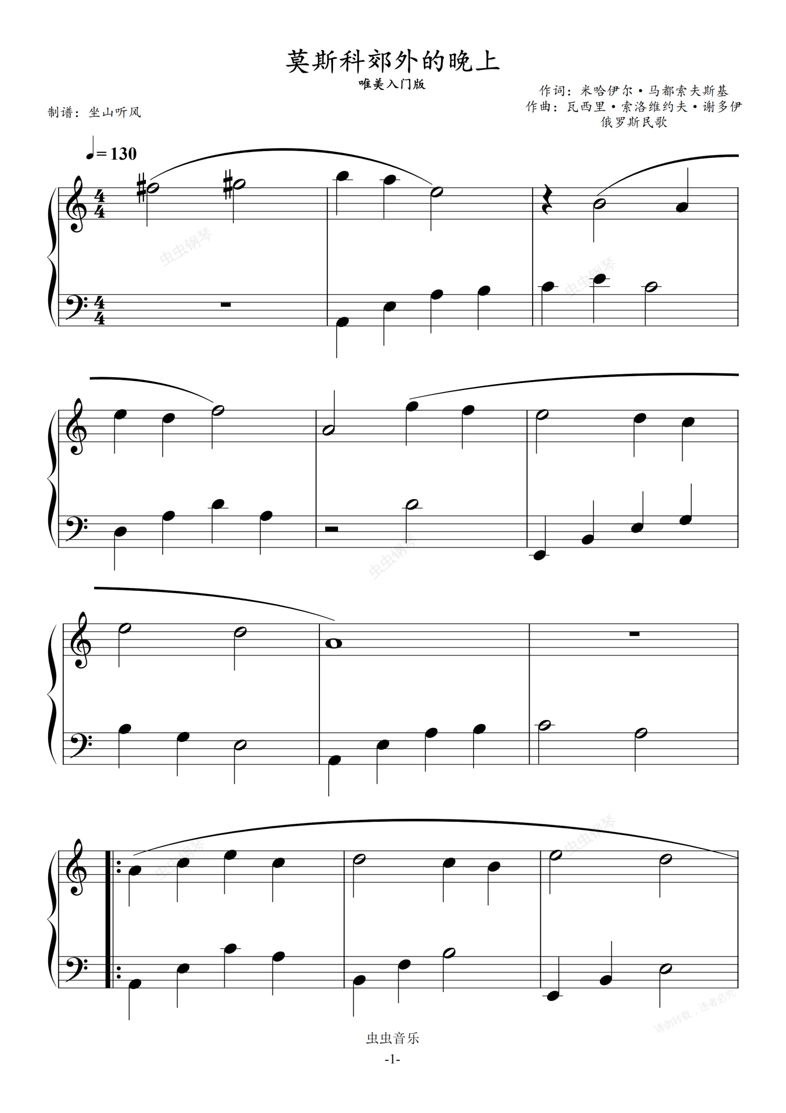 钢琴谱:莫斯科郊外的晚上——唯美入门版(大音符)
