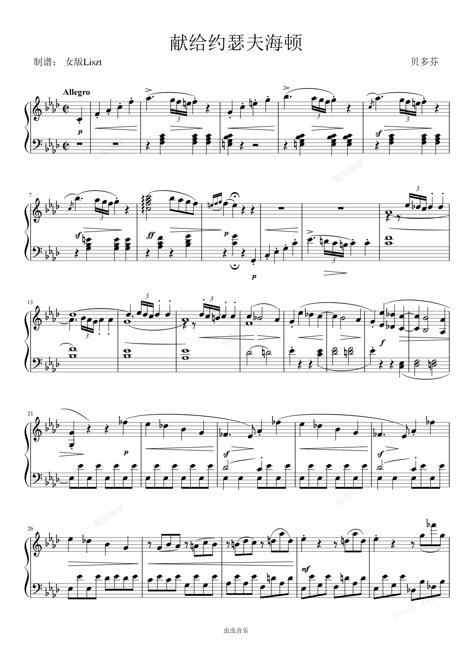 钢琴谱:贝多芬奏鸣曲献给约瑟夫海顿op2no1