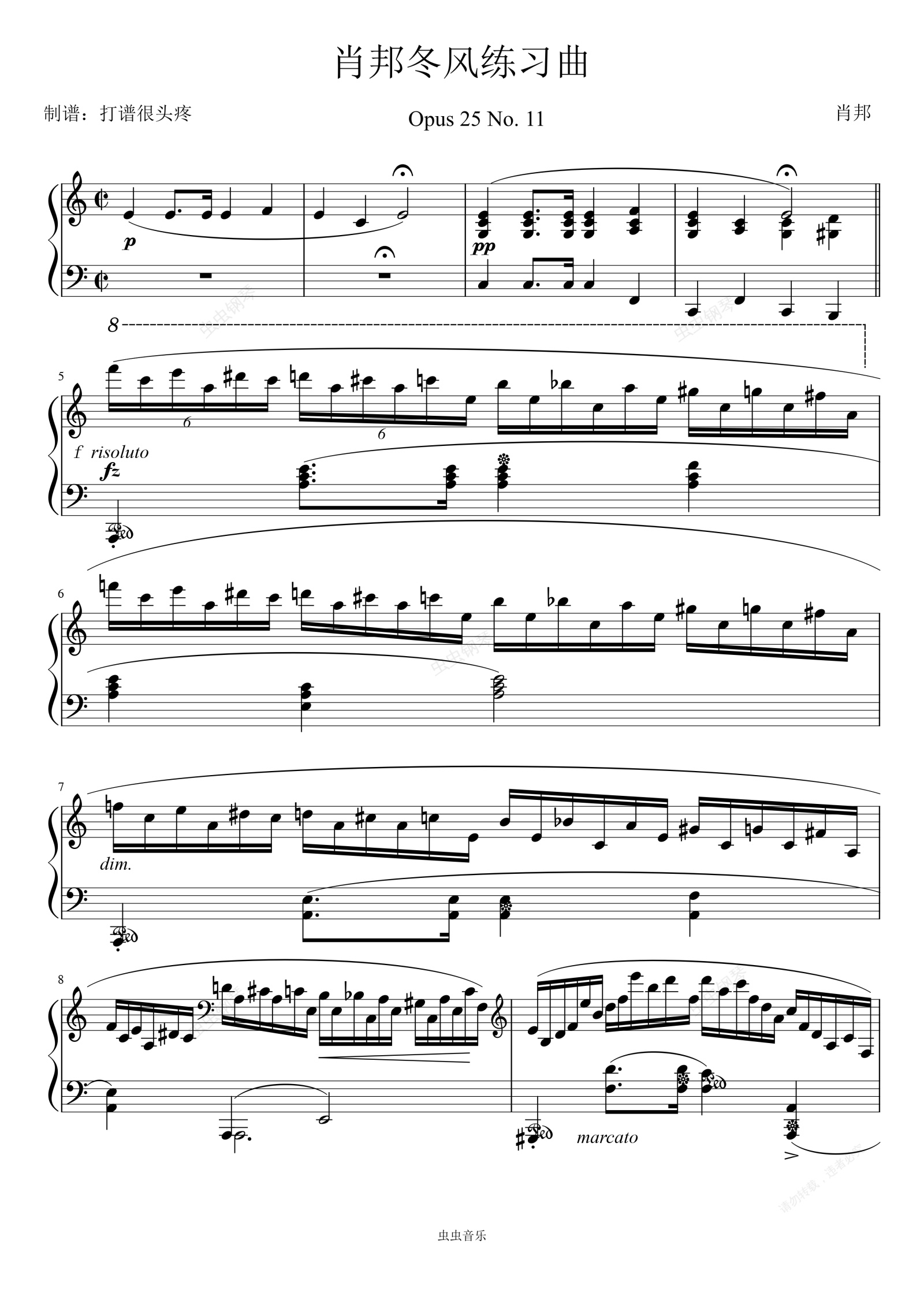 钢琴谱:肖邦冬风练习曲 Op.25 No.11