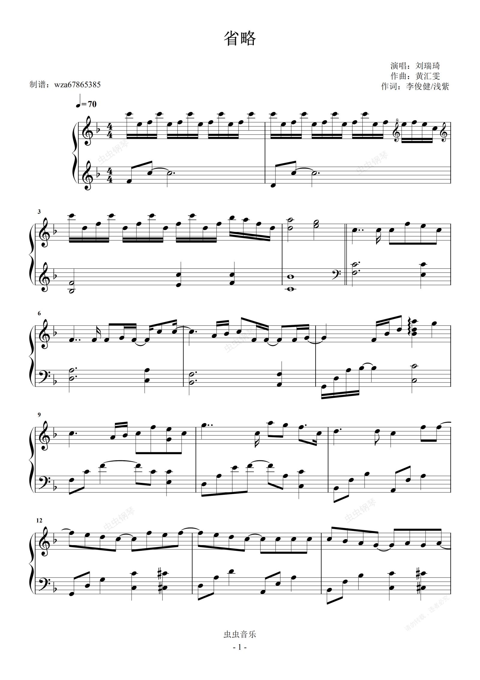 钢琴谱:省略 电视剧《我好喜欢你》插曲