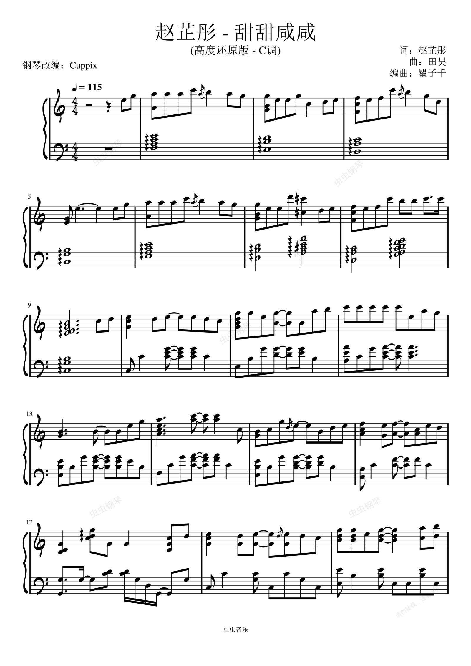 钢琴谱:赵芷彤 - 甜甜咸咸(C调 - 高度还原)Cuppix改编