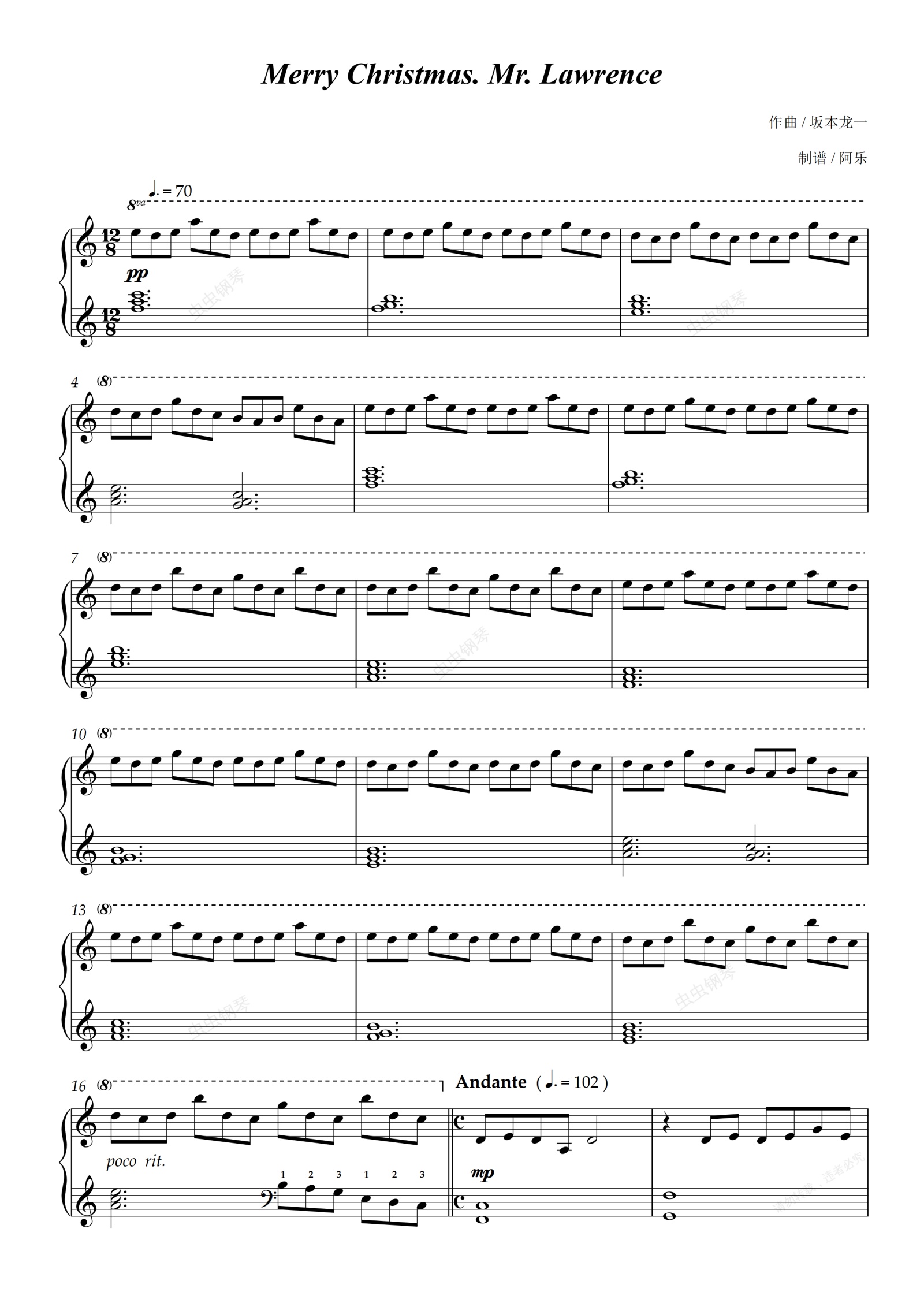 坂本龙一 - Merry Christmas. Mr. Lawrence - 圣诞快乐劳伦斯先生 - 带指法提示