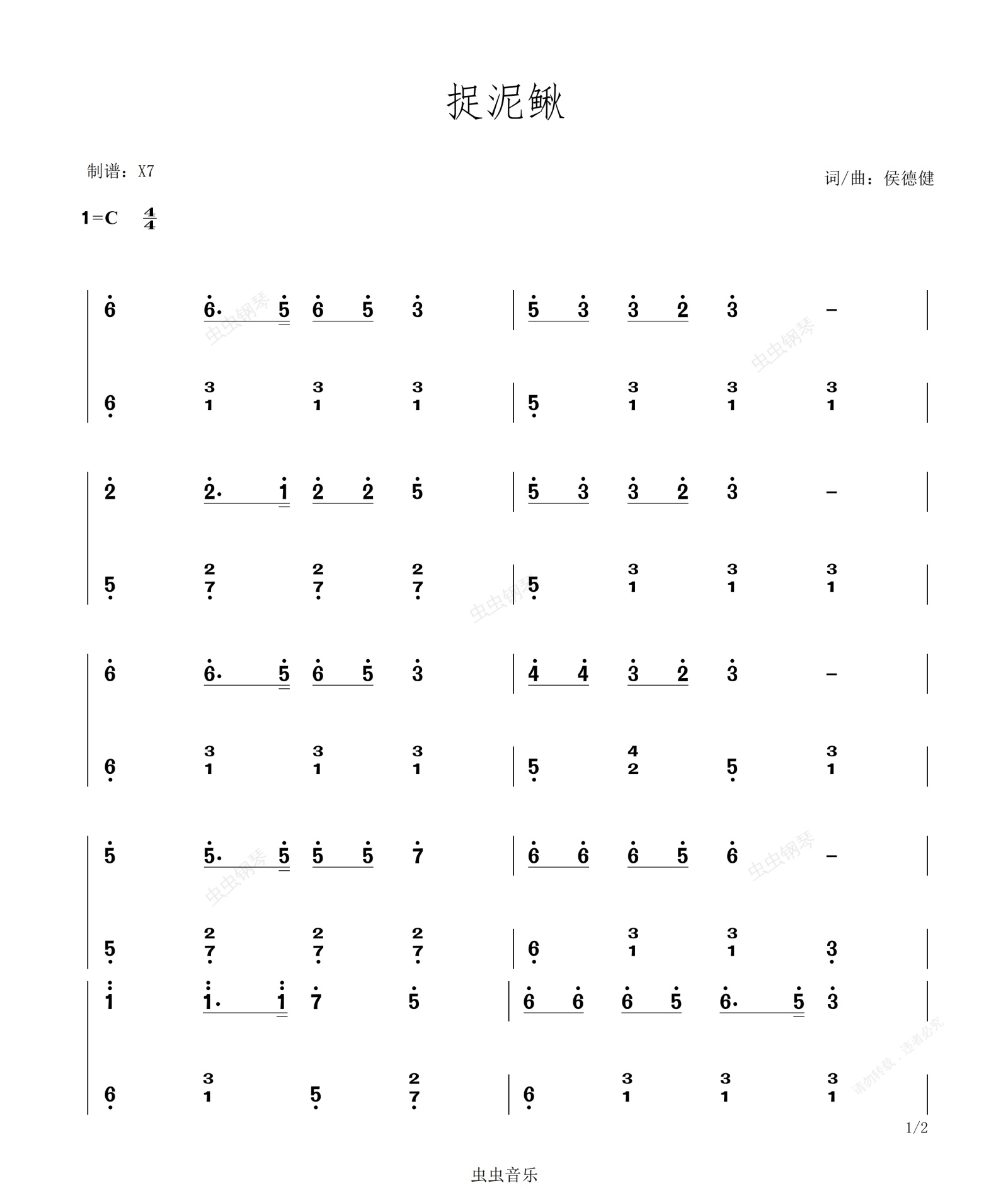 钢琴谱:捉泥鳅