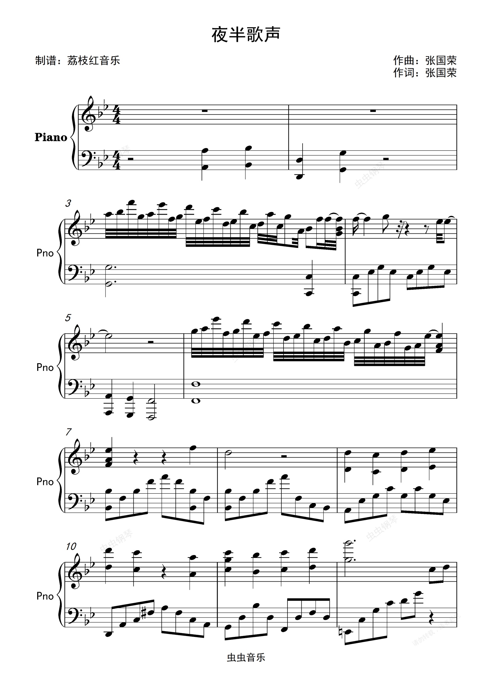 钢琴谱:夜半歌声钢琴谱(降b 降a 两个调) 华晨宇版本
