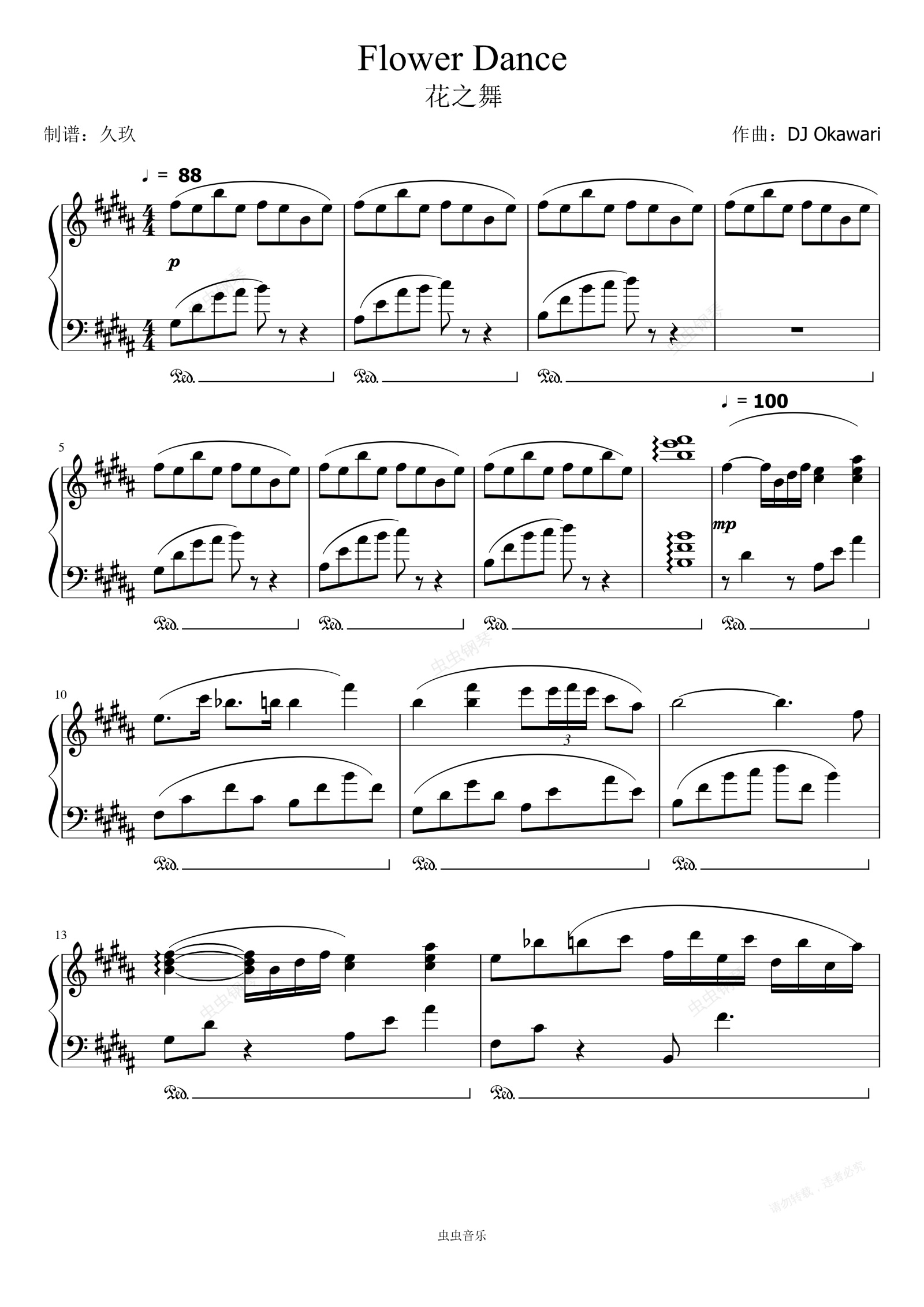 钢琴谱:Flower Dance【转大调版】DJ Okawari 花之舞