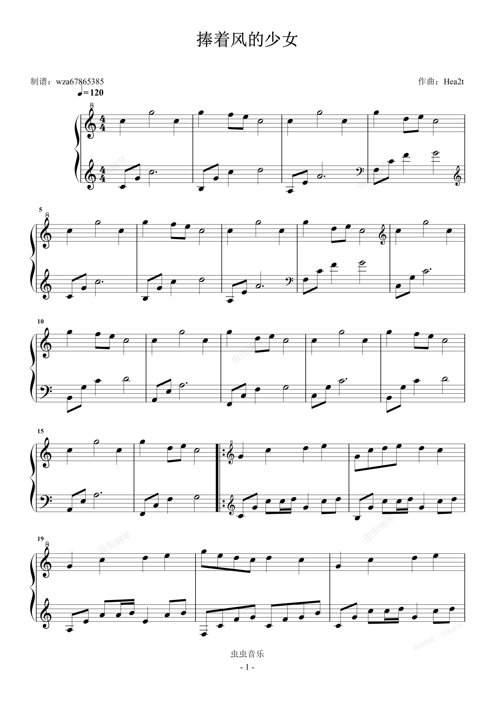 钢琴谱:捧着风的少女