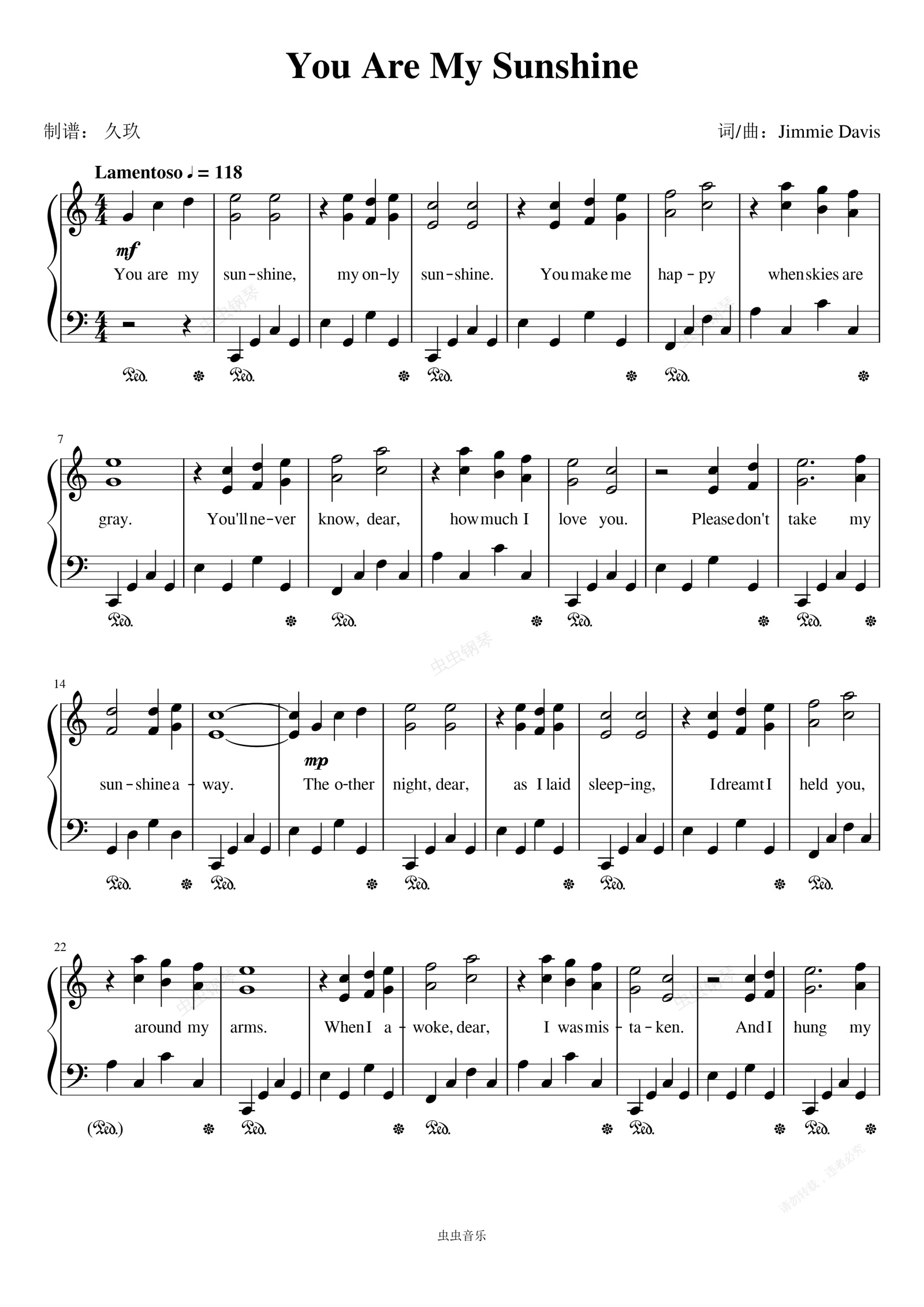 钢琴谱:You are my sunshine-Elizabeth Mitchell Jimmie Davis