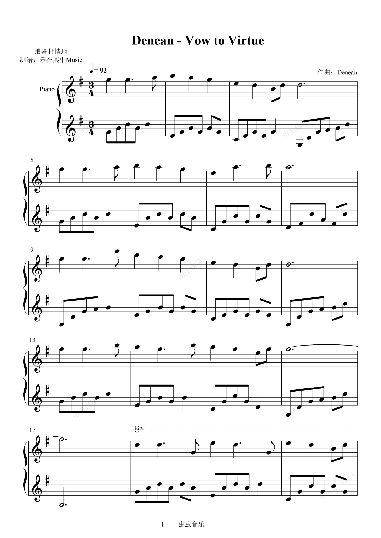 钢琴谱:Vow to Virtue-Denean(完美还原)
