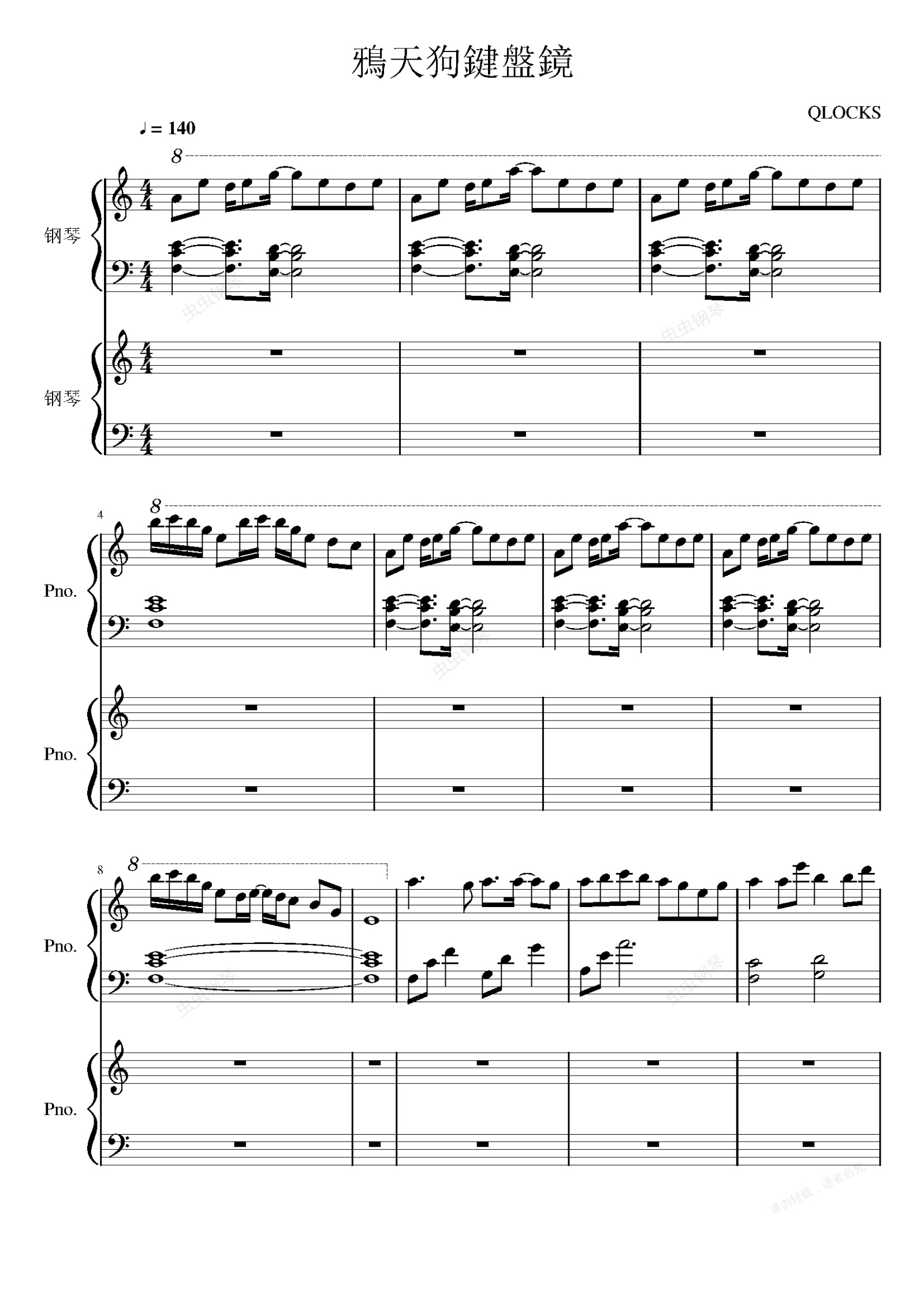 钢琴谱:【东方】QLOCKS - 鴉天狗鍵盤鏡