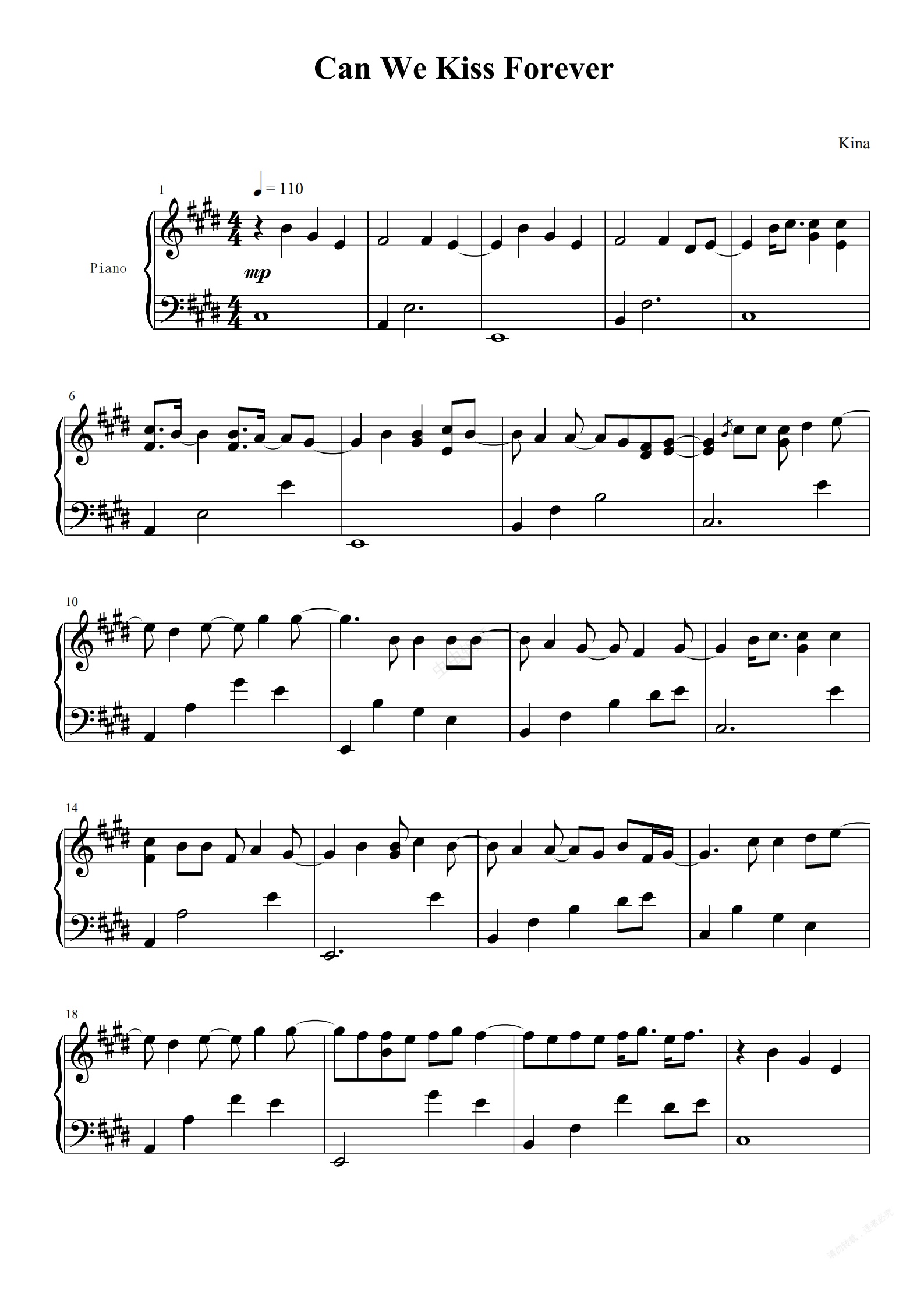 钢琴谱:Can we kiss forever