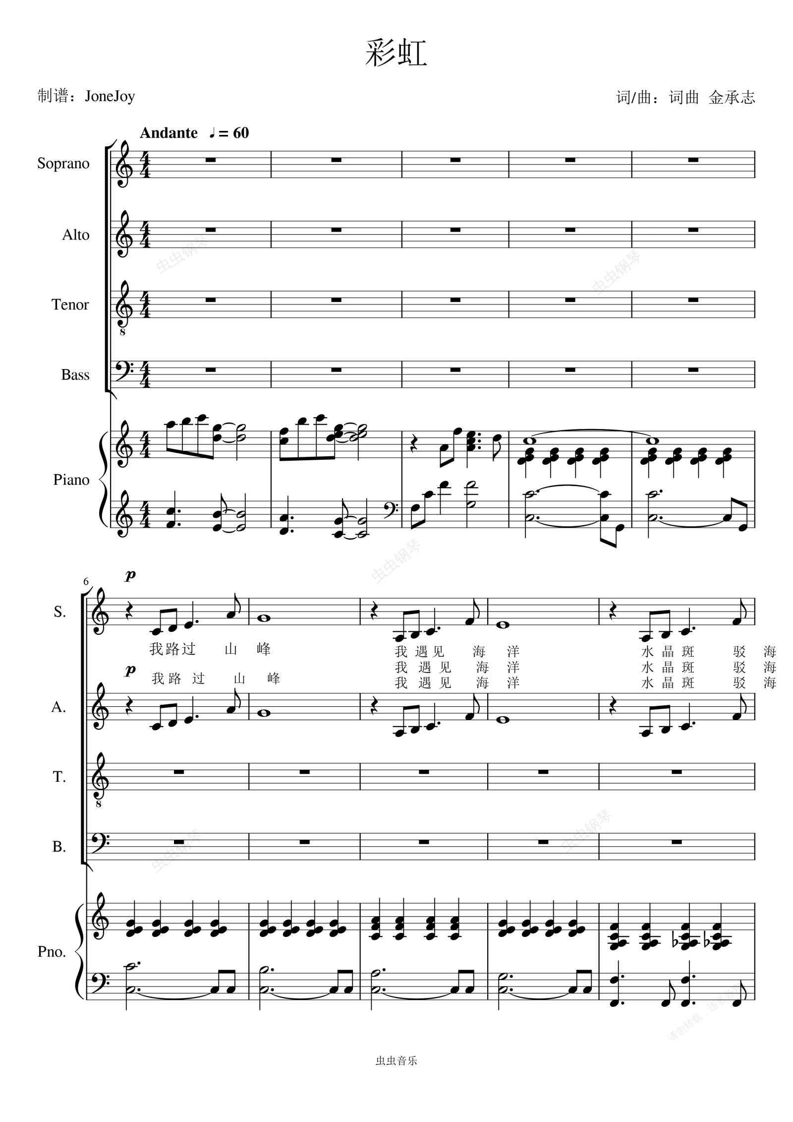 钢琴谱:彩虹-上海彩虹室内合唱团