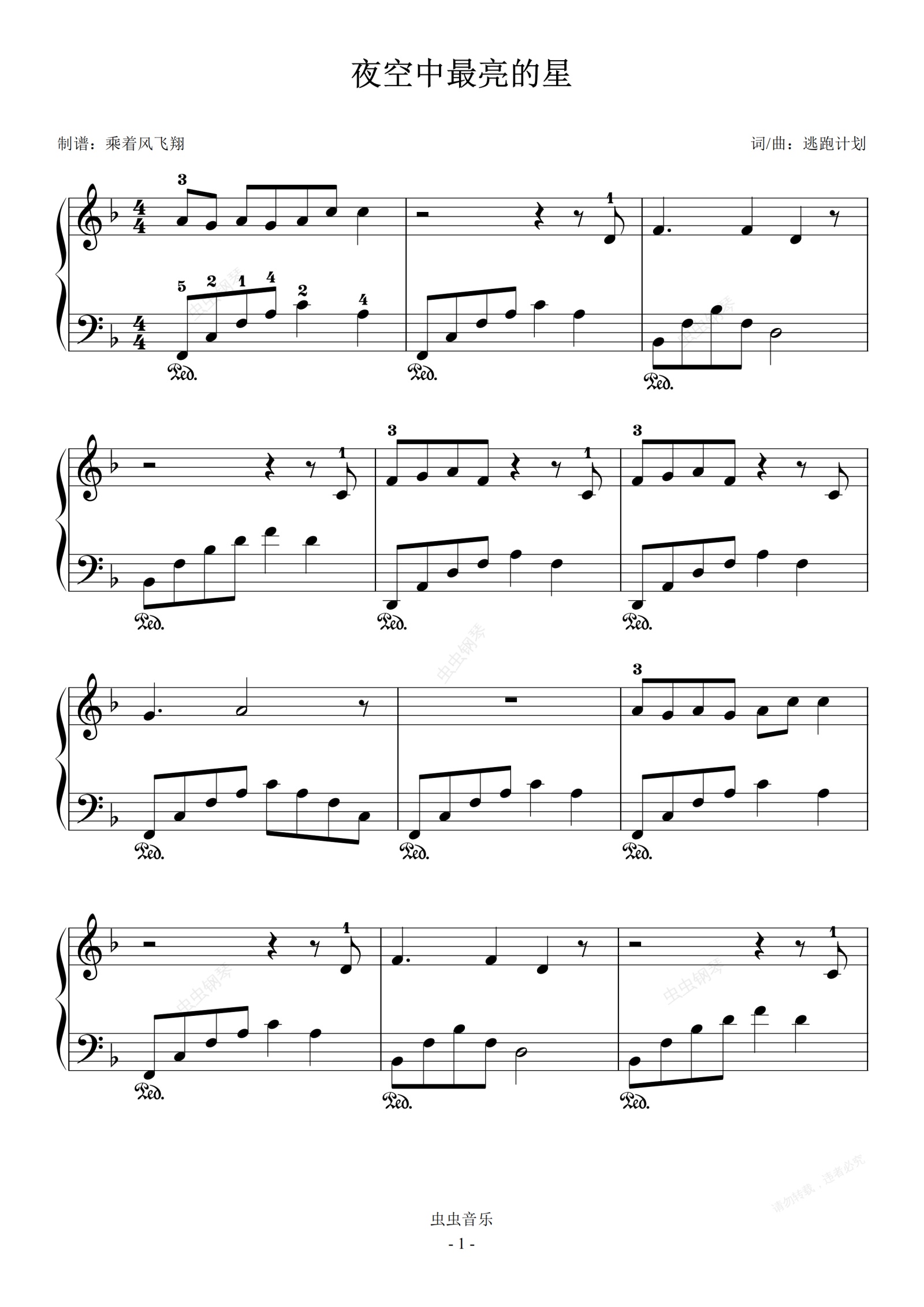 钢琴谱:夜空中最亮的心--逃跑计划