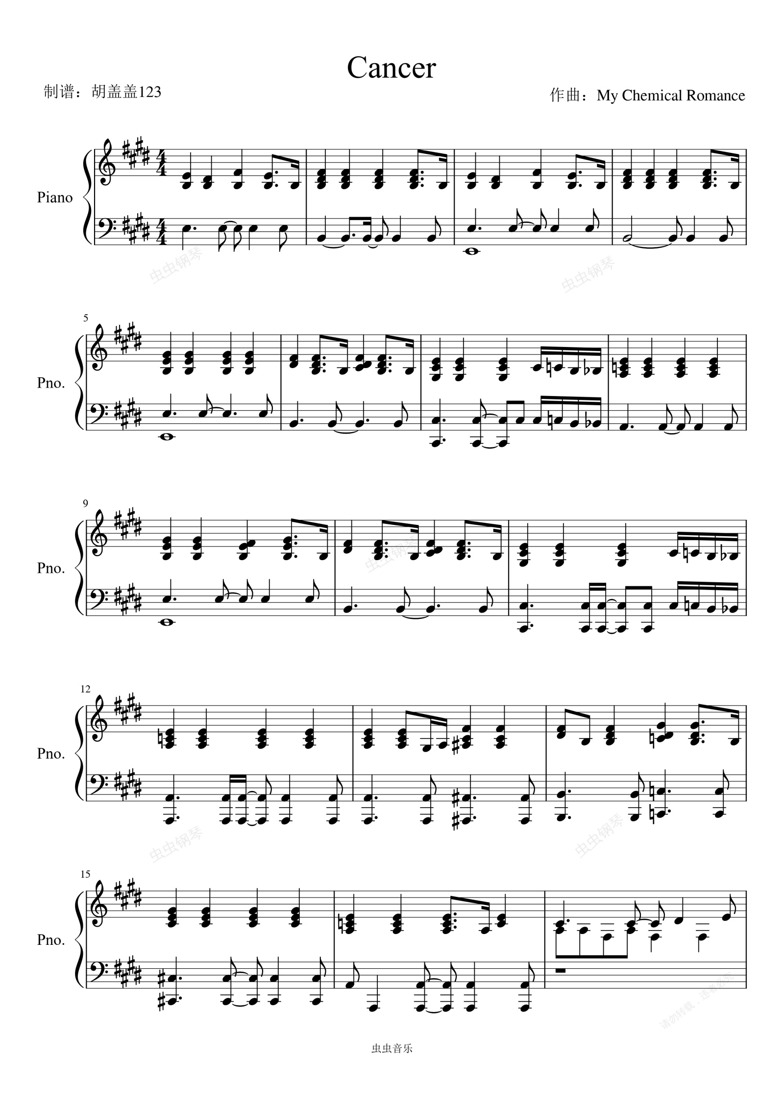 钢琴谱:Cancer