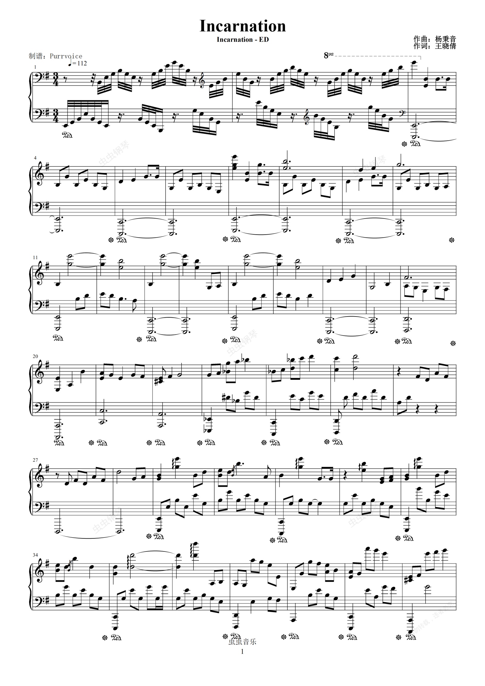 钢琴谱:Incarnation (《灵笼》第一季主题曲)